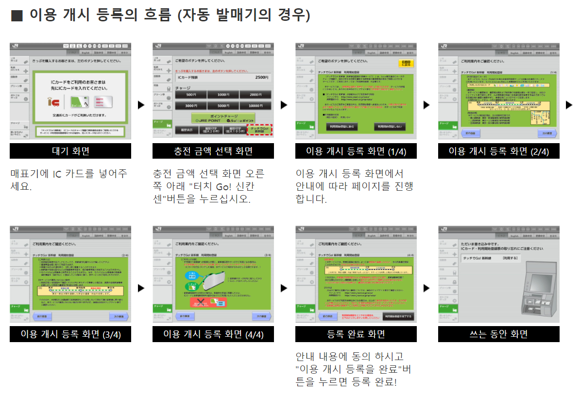 '터치로 Go!신칸센'을 이용하려면 교통카드 사용 등록을 해야 하는데요.