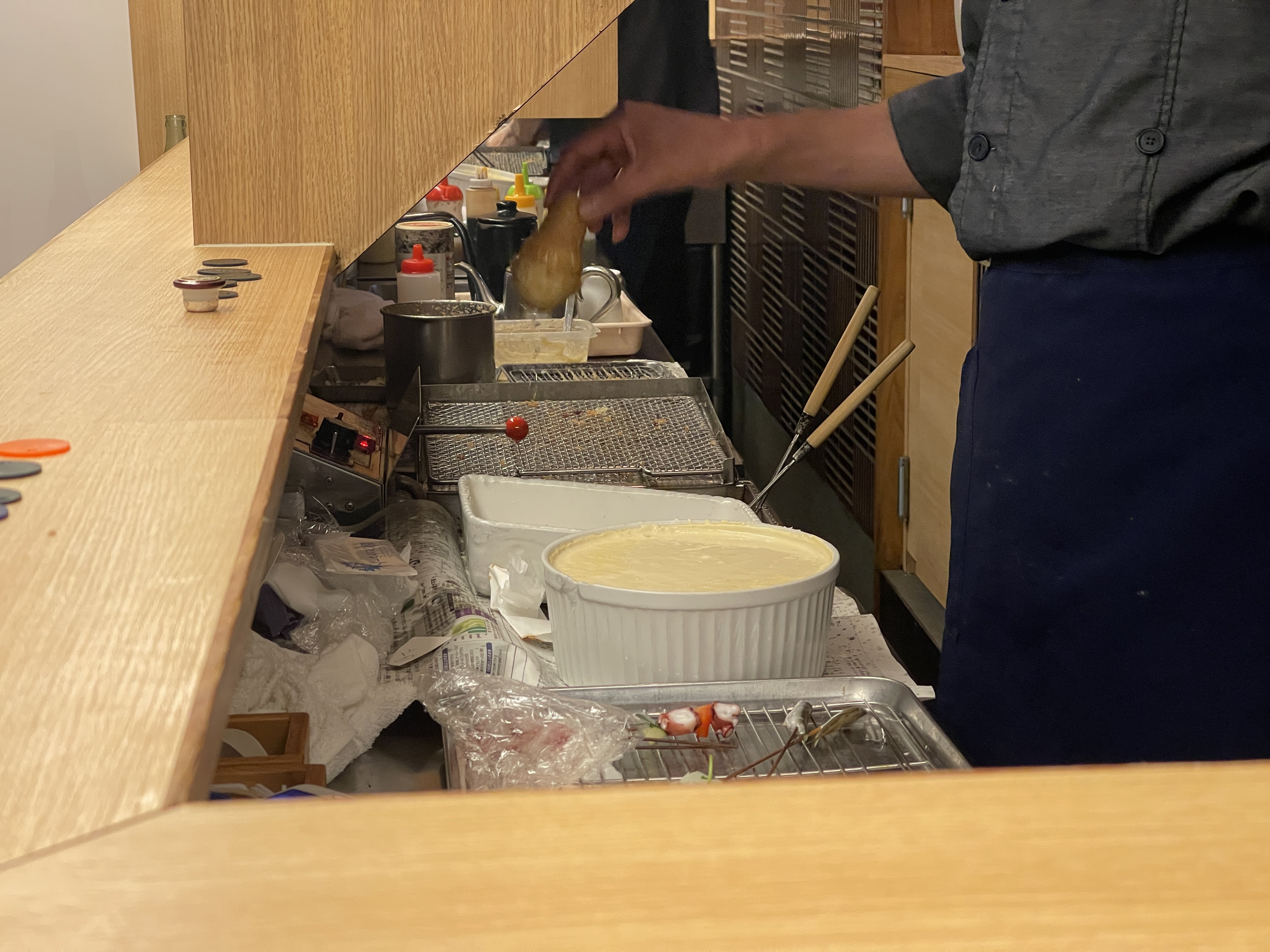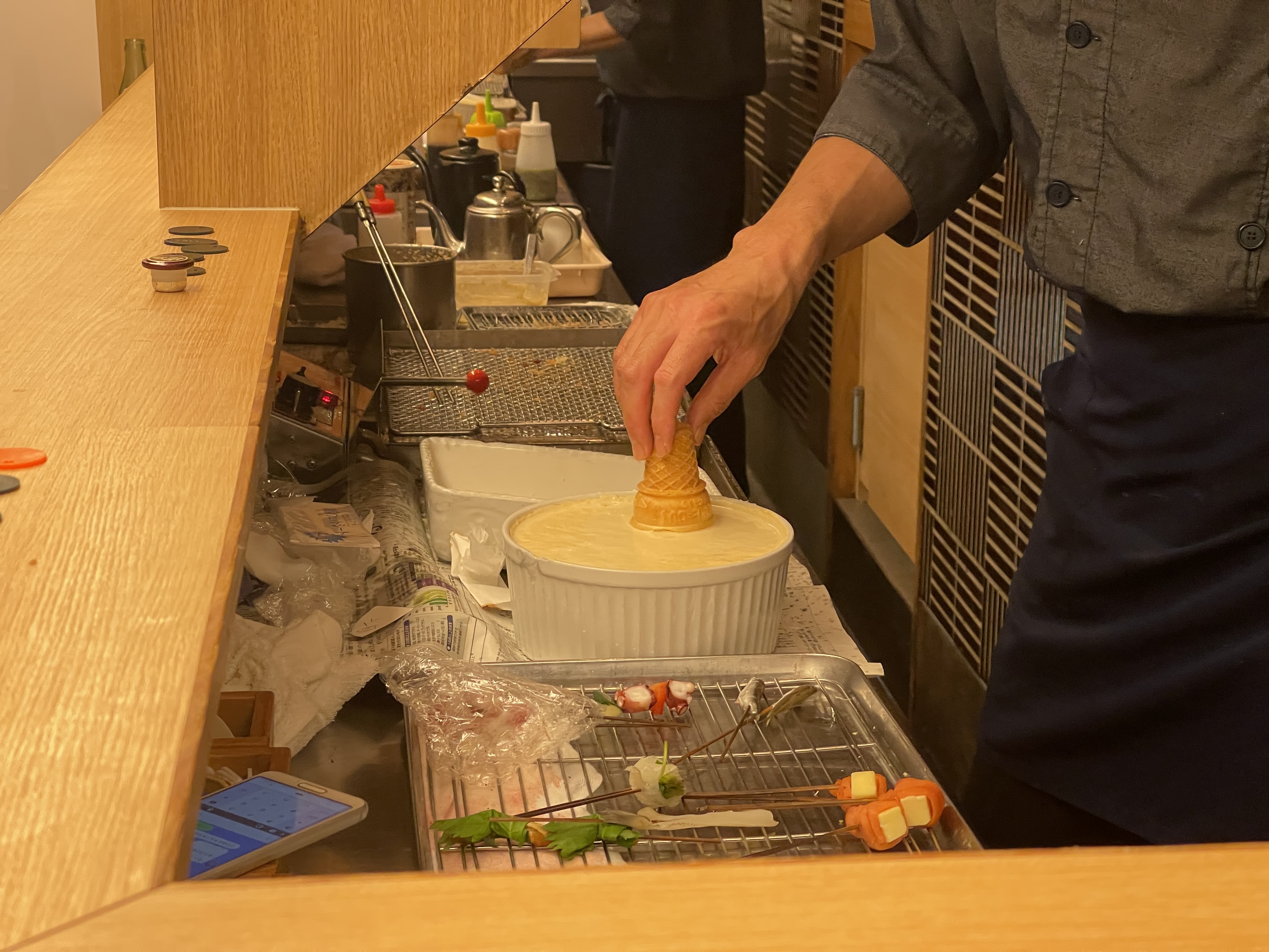 꼬치를 그만 먹겠다고 말하면 튀김 제공을 멈추고 마지막으로 디저트로 주는 튀김을 먹고 계산하는 식이죠.