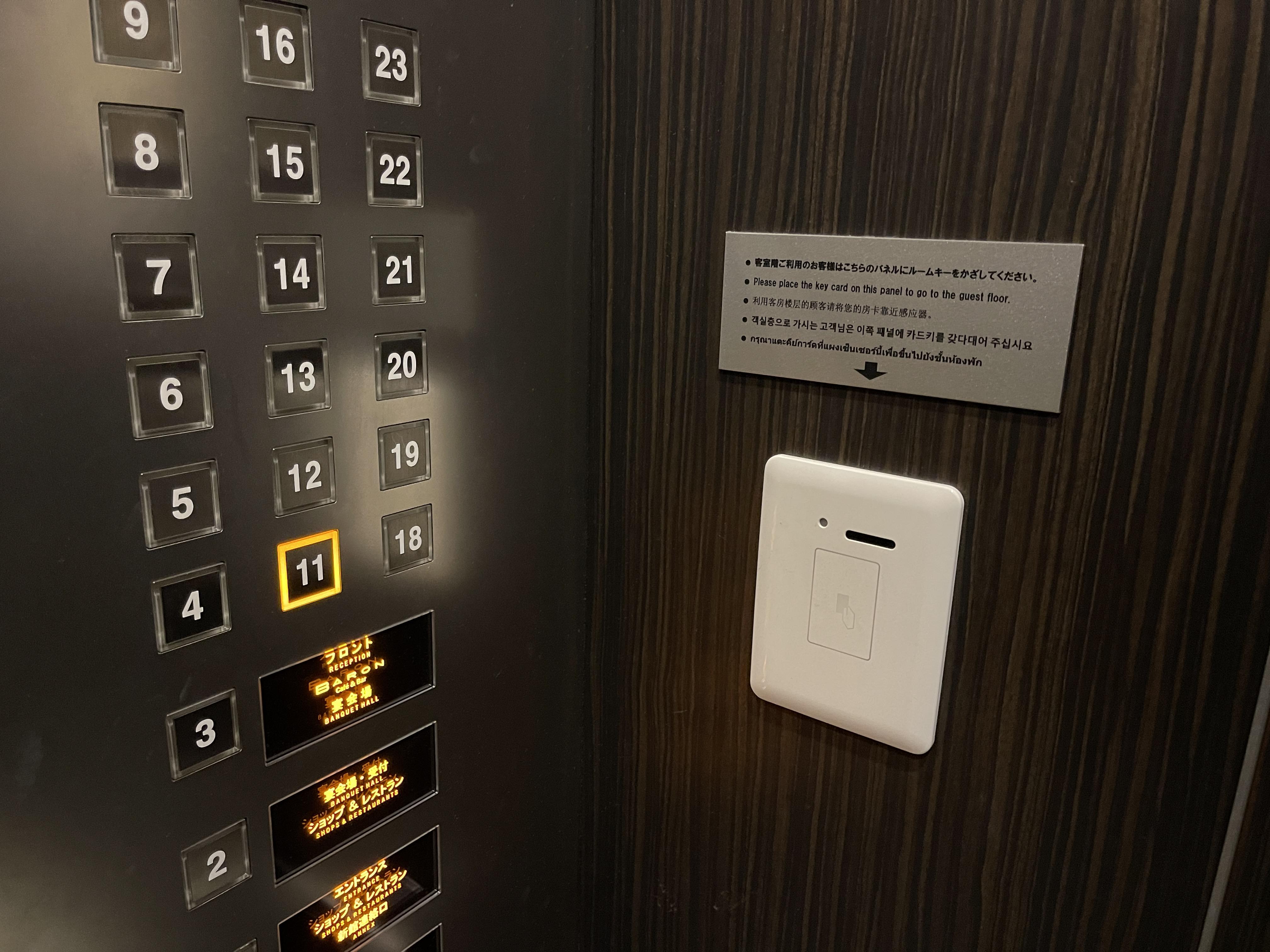 엘리베이터에 카드키를 인식해 11층으로 올라가
