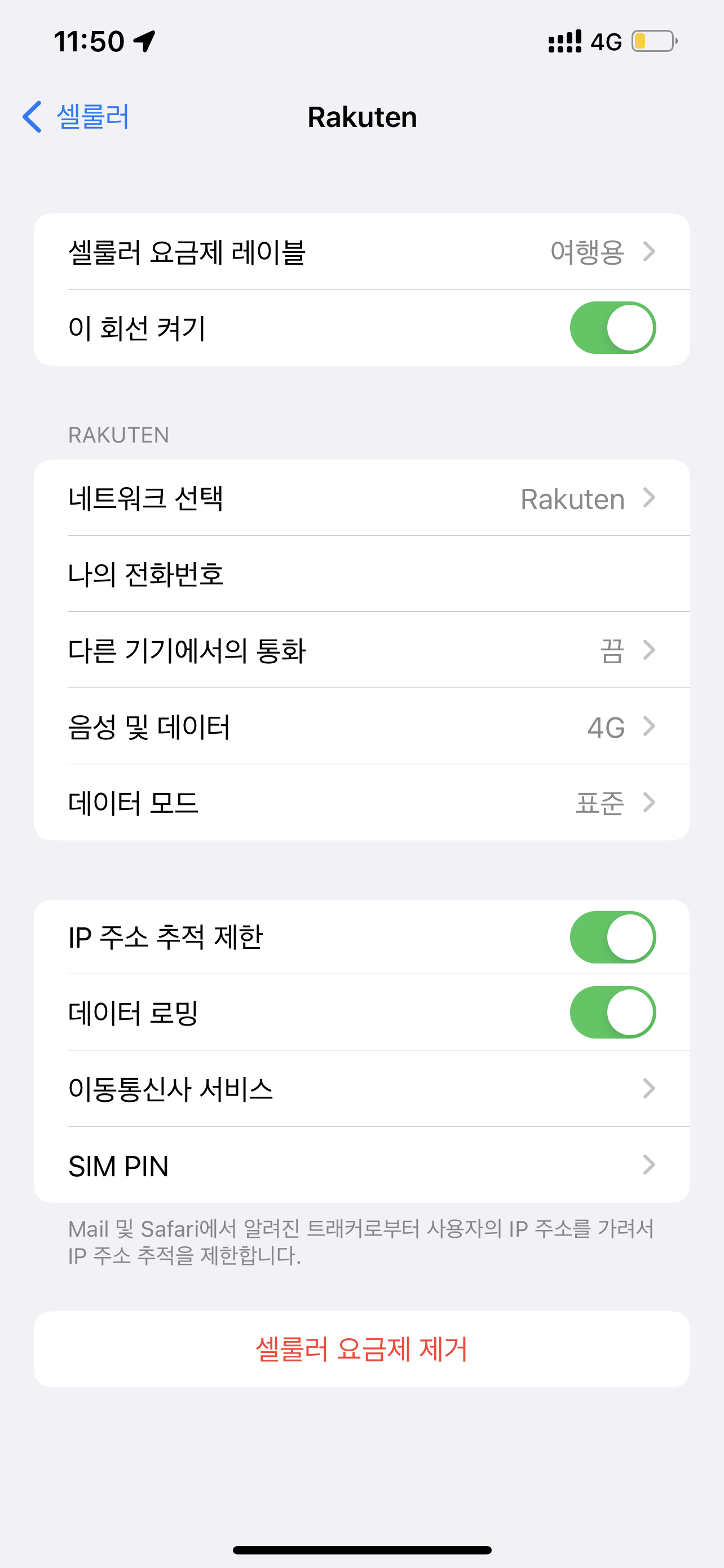 2박 3일 동안 잘 빌려쓴 라쿠텐 e심을 지우고 비행기에 탔습니다.