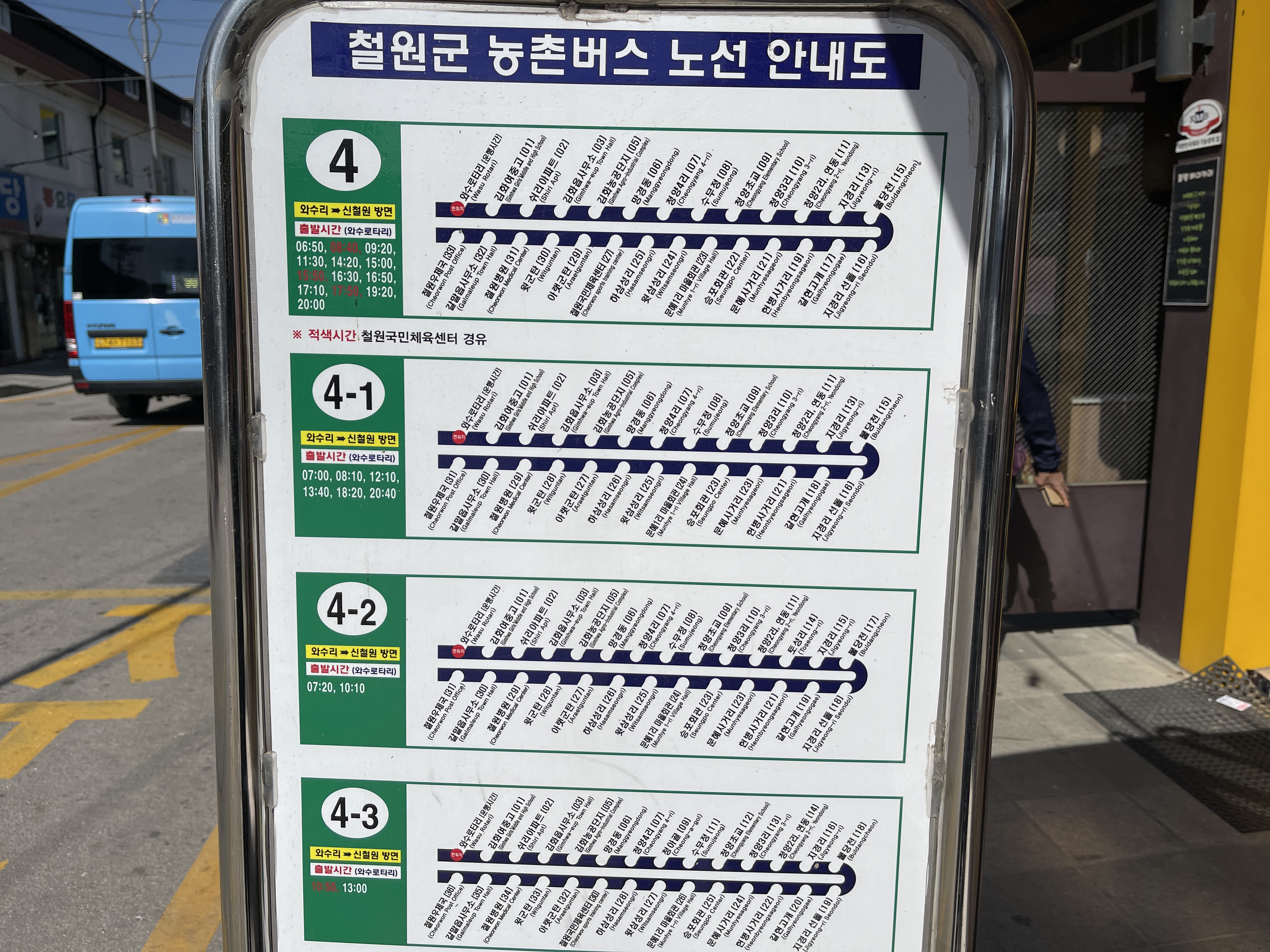 4-2번은 중간에 토성리라는 마을로 들어갔다 나오는 지선 노선이라서 그런지