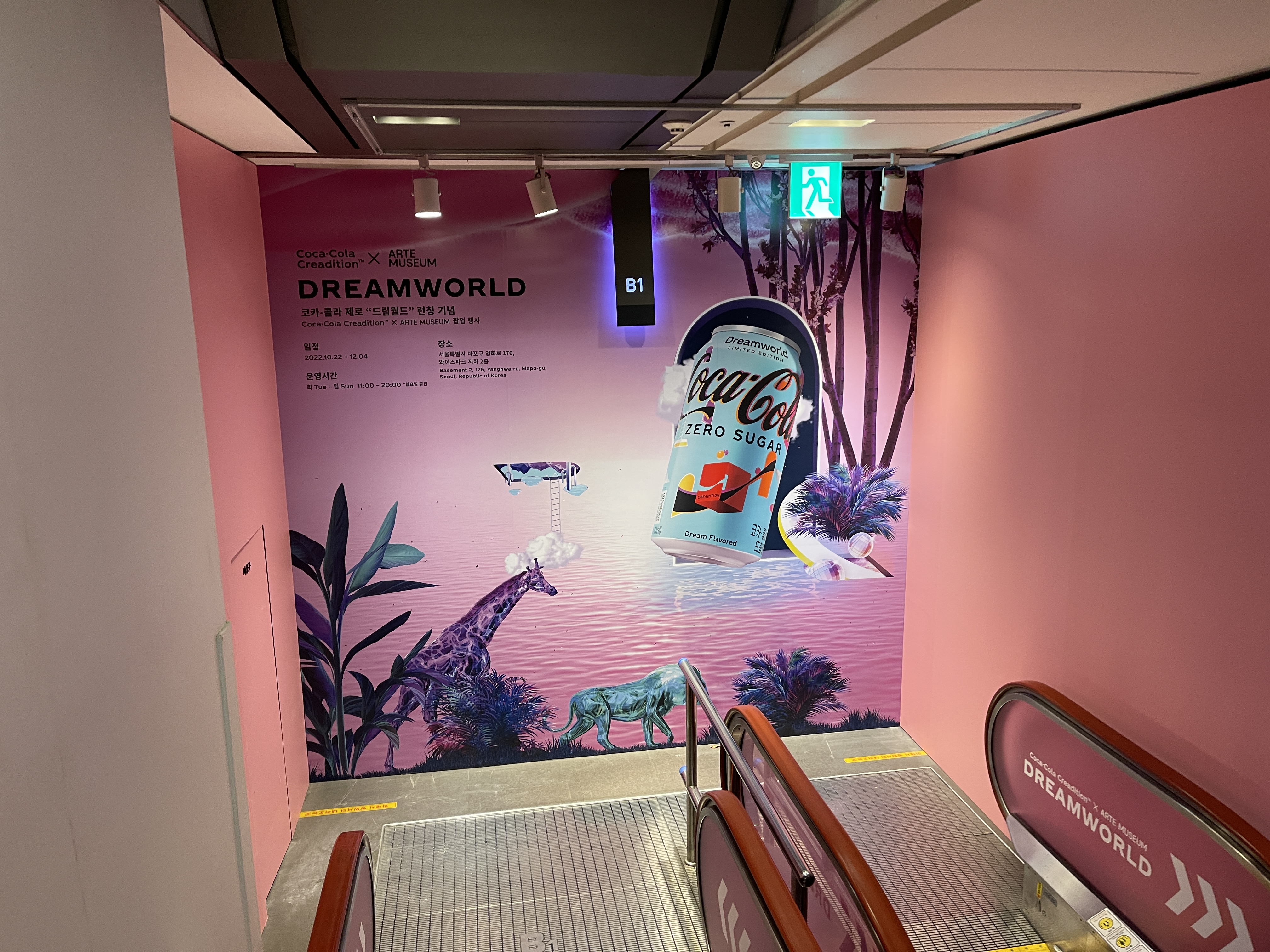 코카콜라 크리에디션의 일환으로 출시된 한정판 코카콜라 제로 드림월드를 알리는 팝업스토어인데