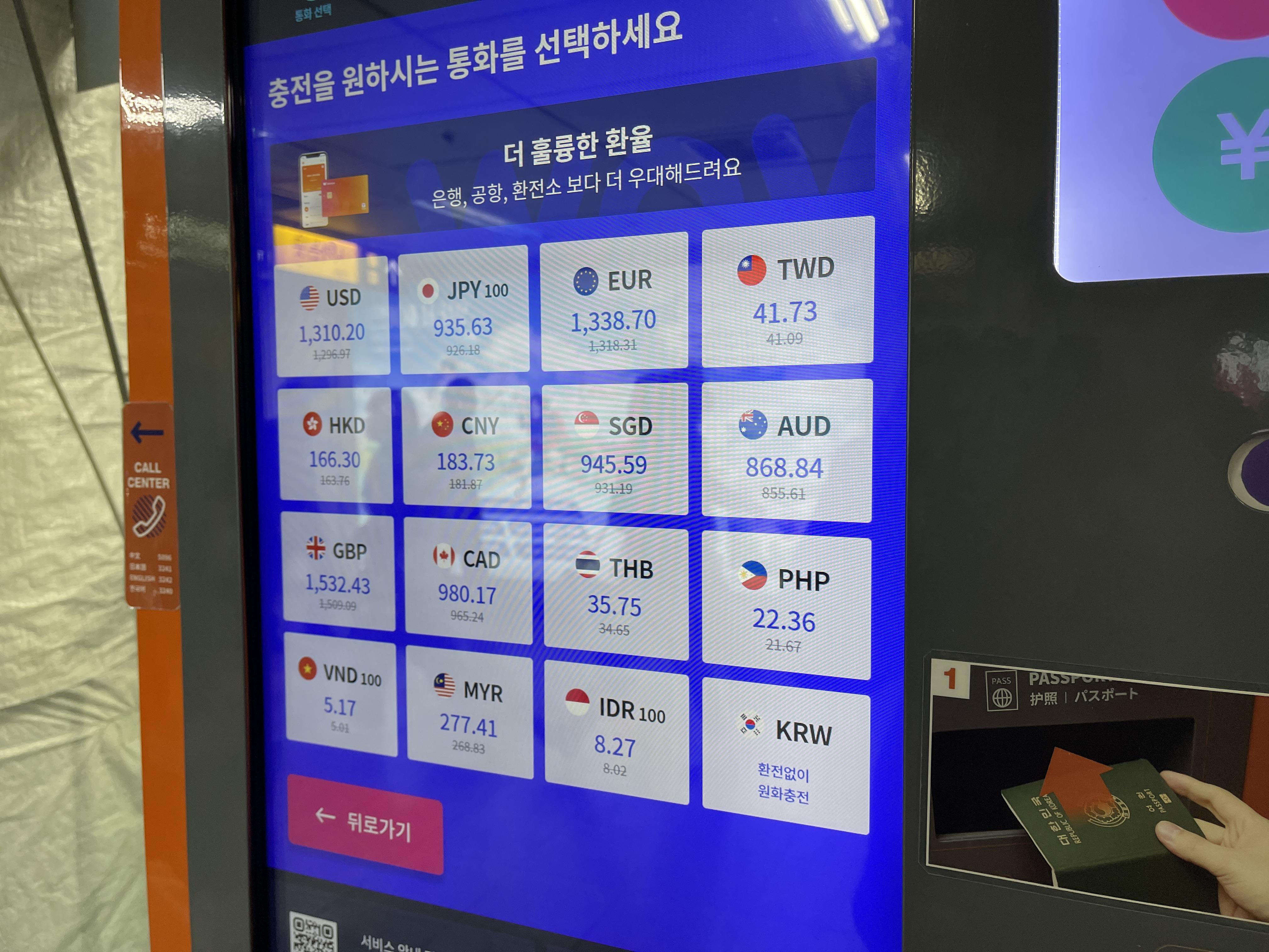 어떻게 만드는지 알아보자 해서 홍대입구역 2번 출구 근처에 있는 환전 키오스크에 왔습니다.