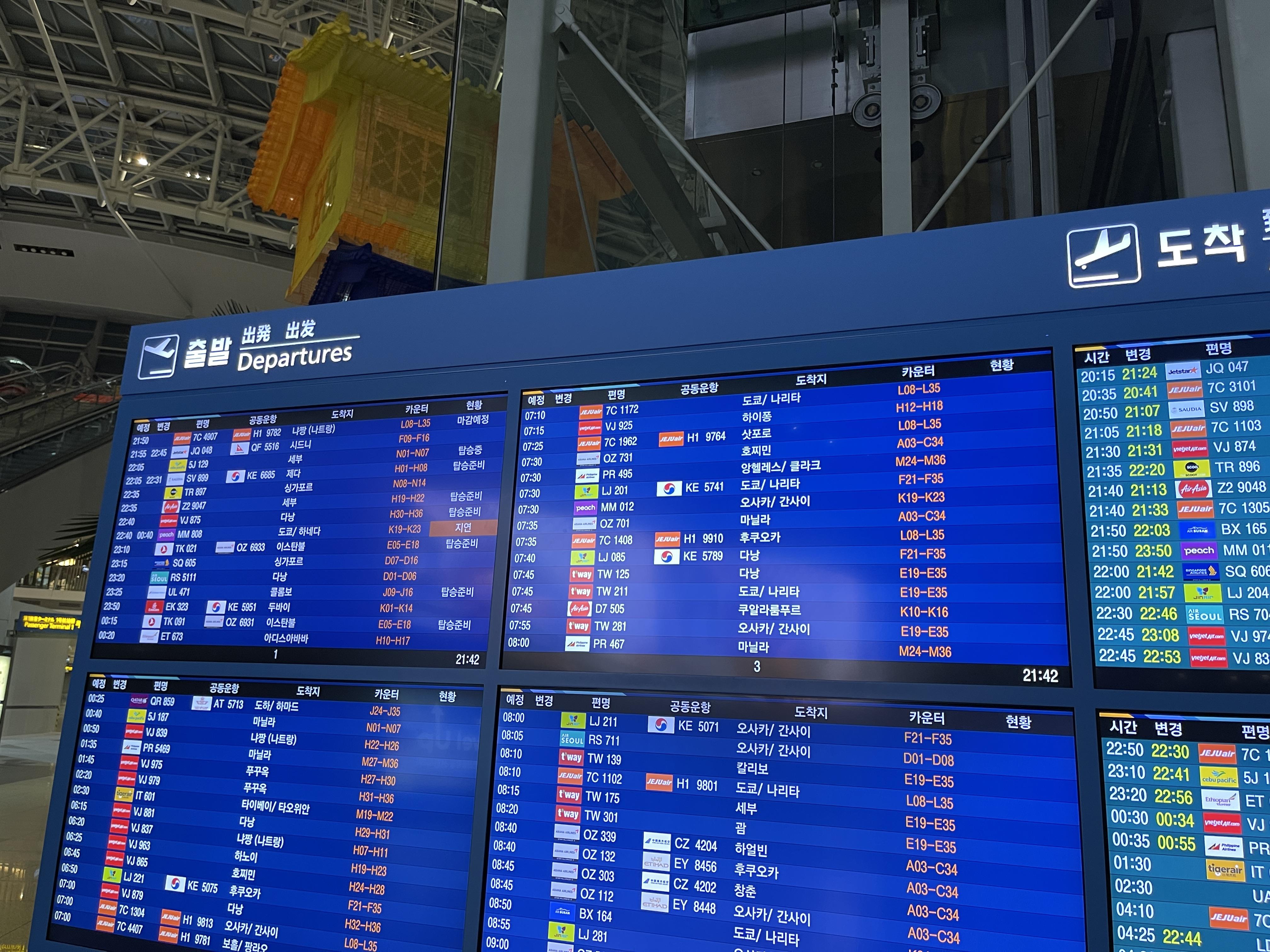 내일 아침 탈 비행기를 확인하려고 FIDS를 보니