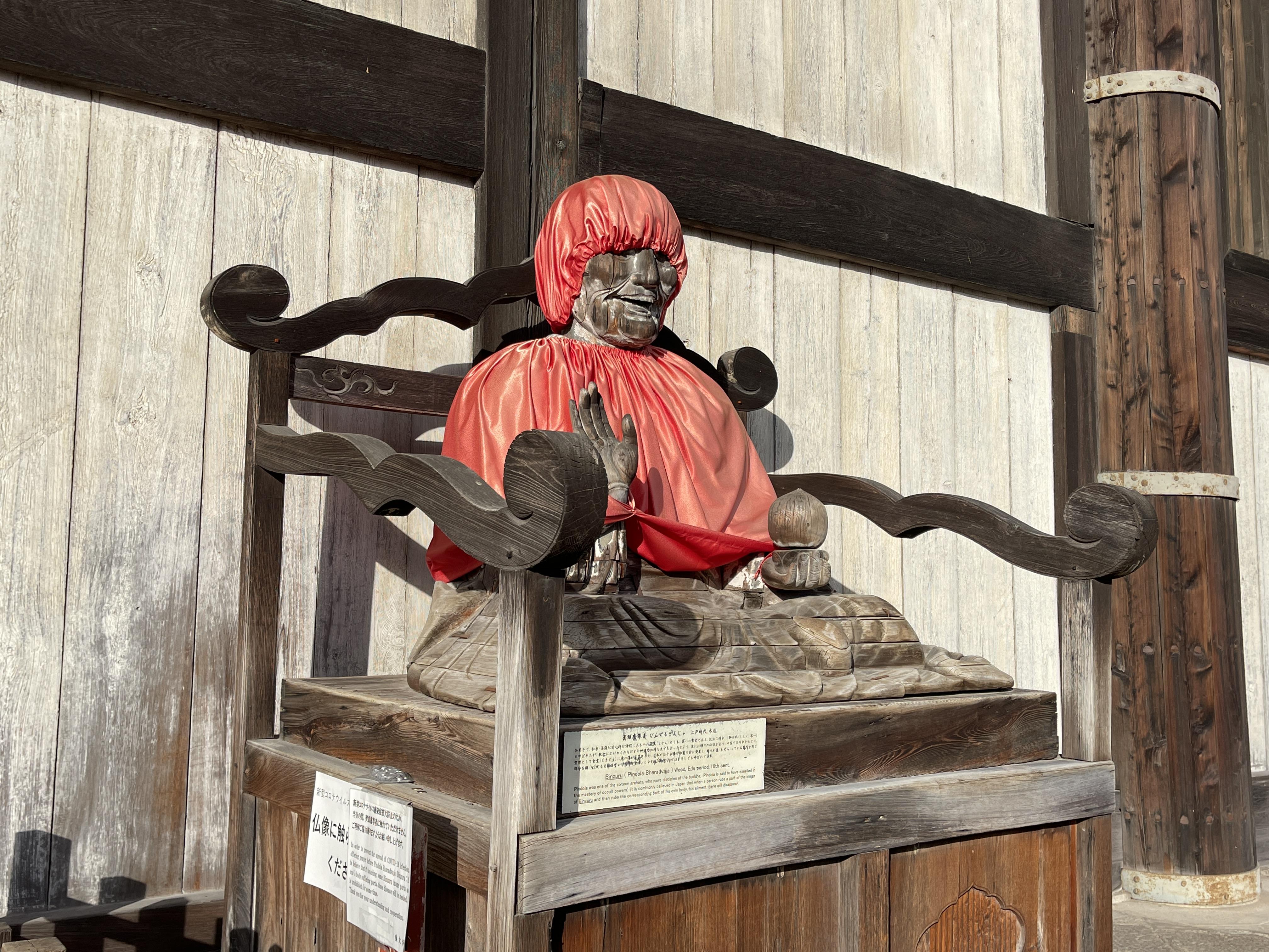 예전에는 사람들이 열심히 만졌지만 코로나로 인해 이제는 만질 수 없게 된 목조상을 지나