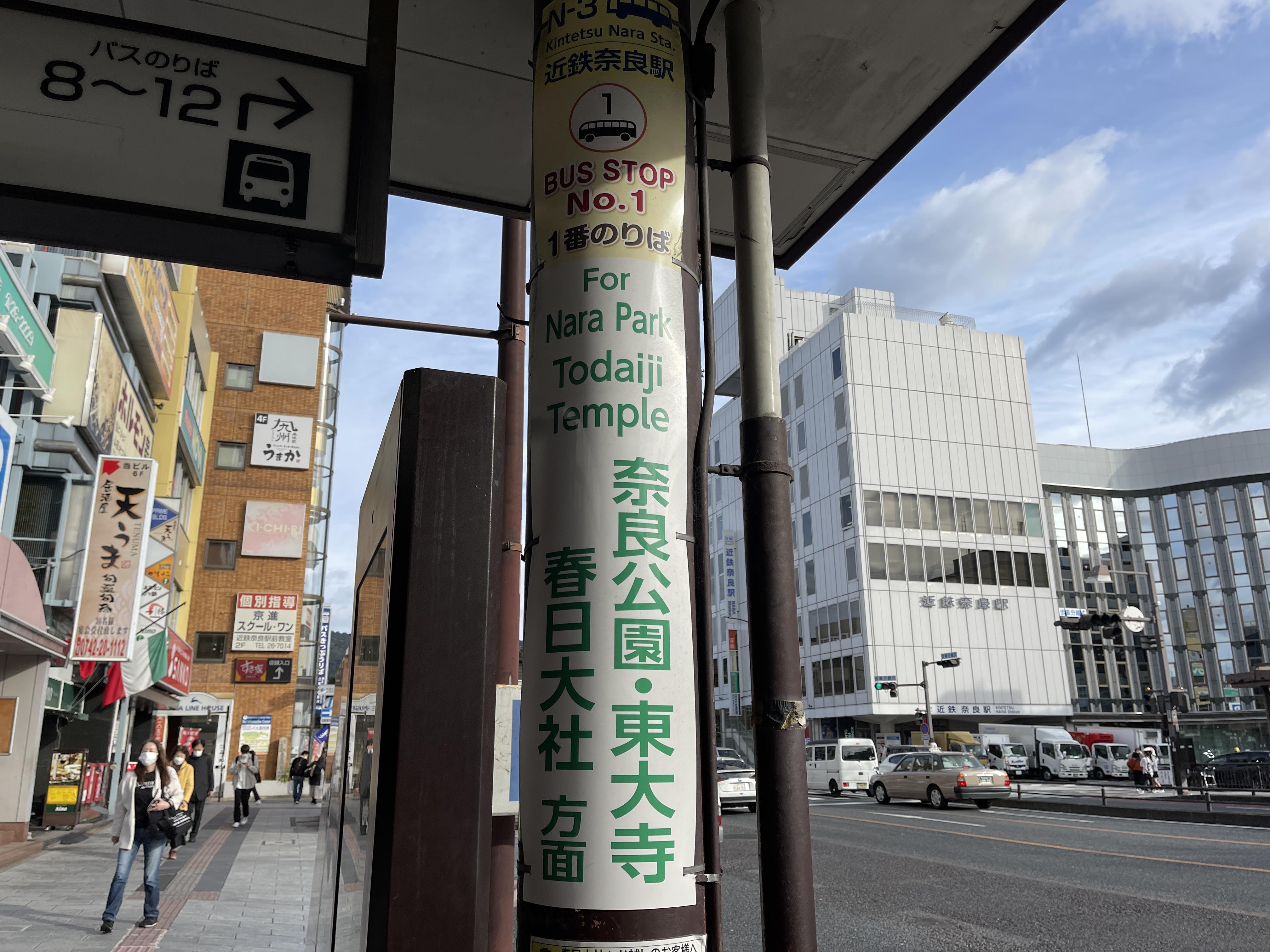 토다이지 다이부츠덴 카스가타이샤 마에(토다이지 대불전, 카스가신사 앞) 정류장에 내려