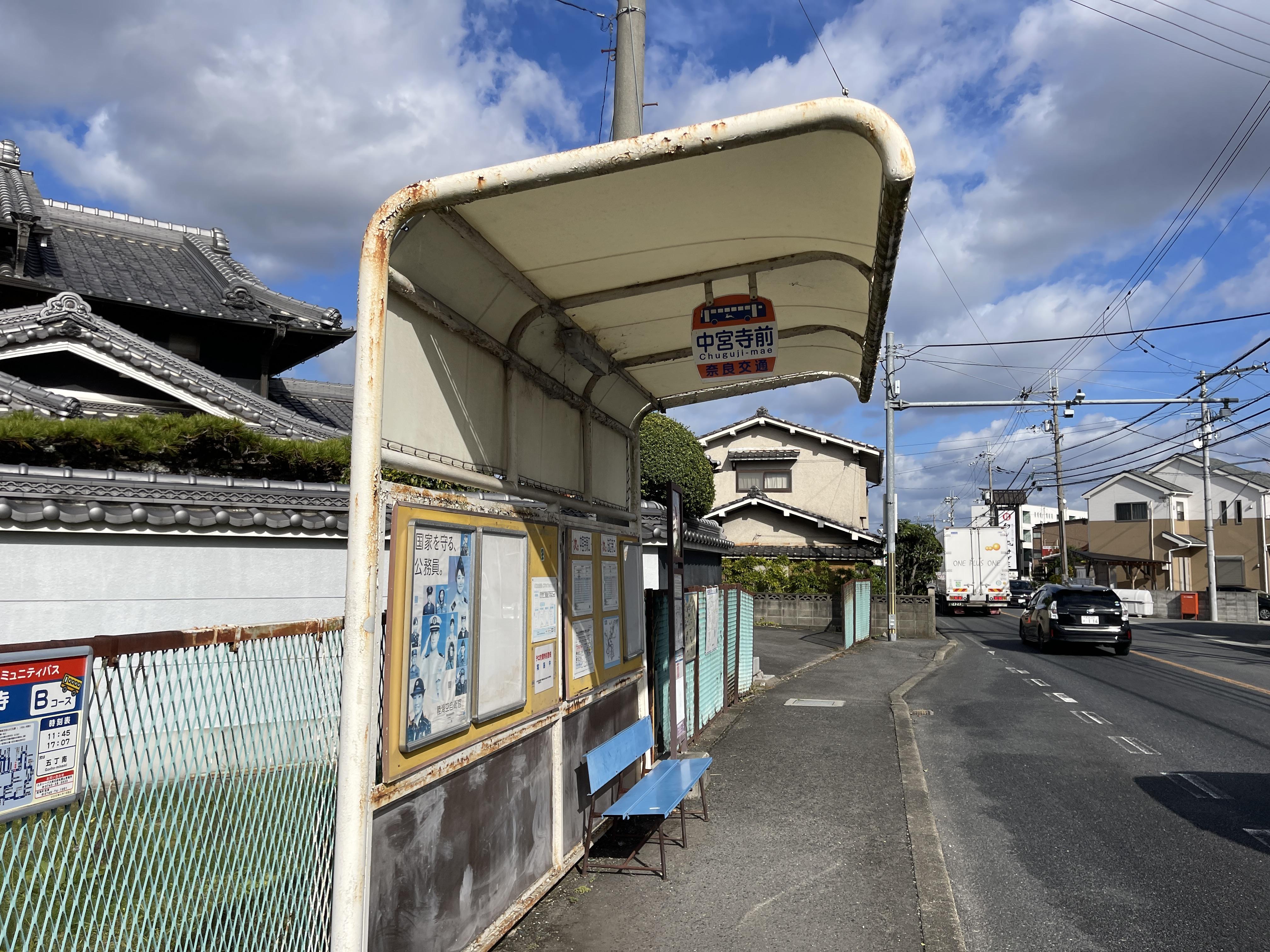 호류지로 갈 때 내렸던 버스 정류장에서 좀 멀리 떨어진 곳으로 나왔기에
