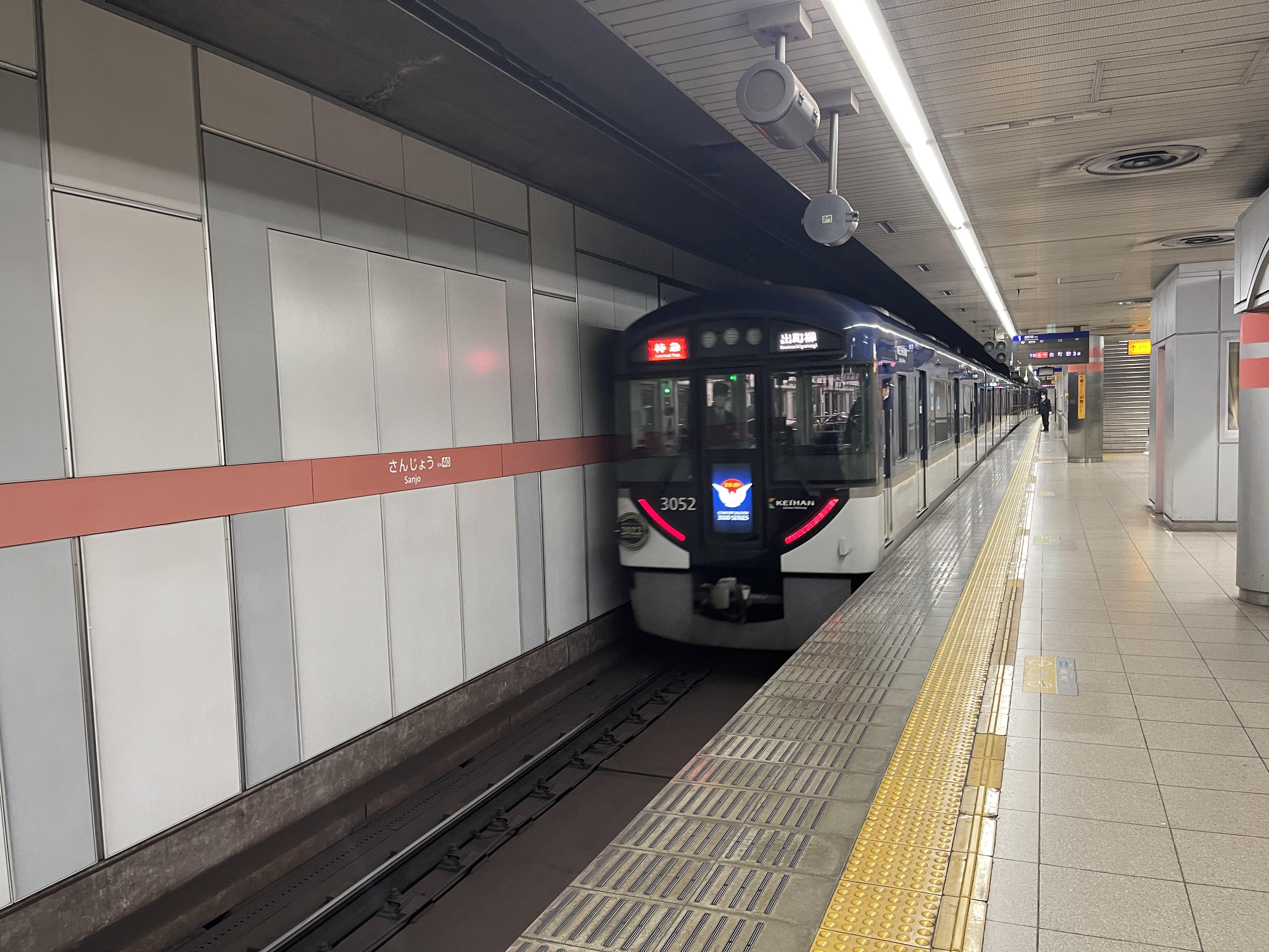 아무튼 산조케이한역에 들어온 열차를 타고