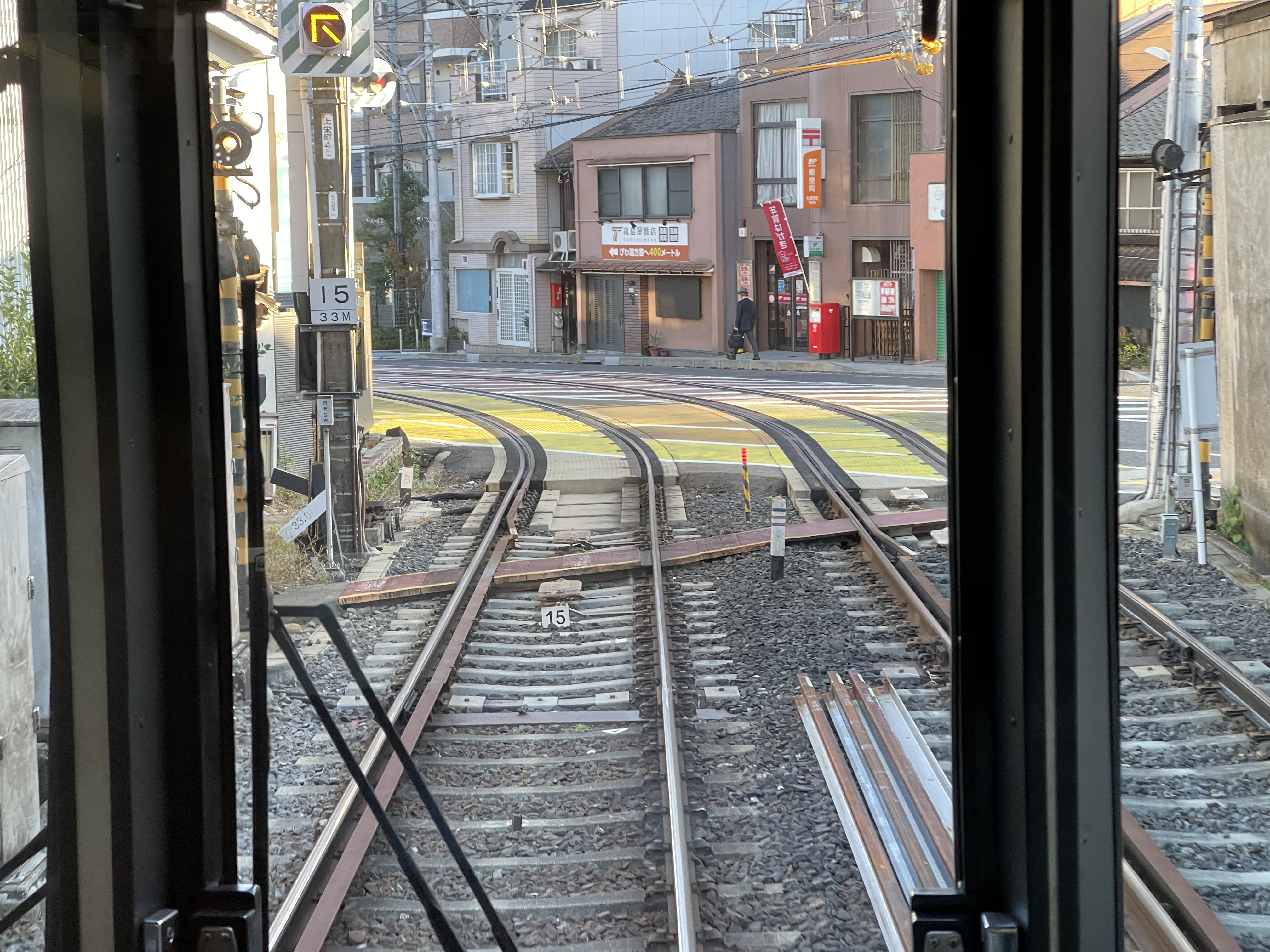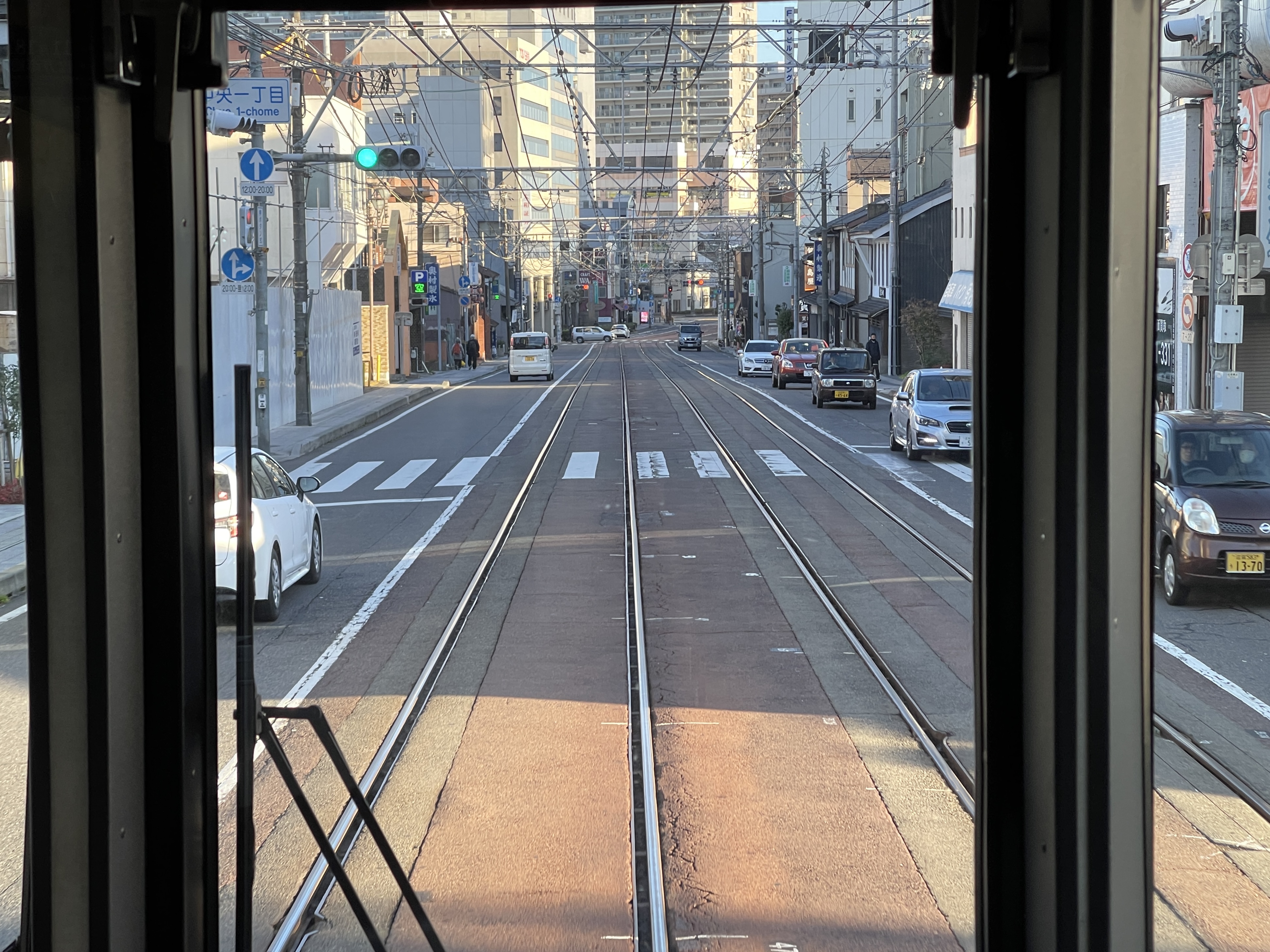 방금 전까지는 전철로 달리던 열차가 노면전차처럼 도로를 달리는 모습을 볼 수 있습니다.