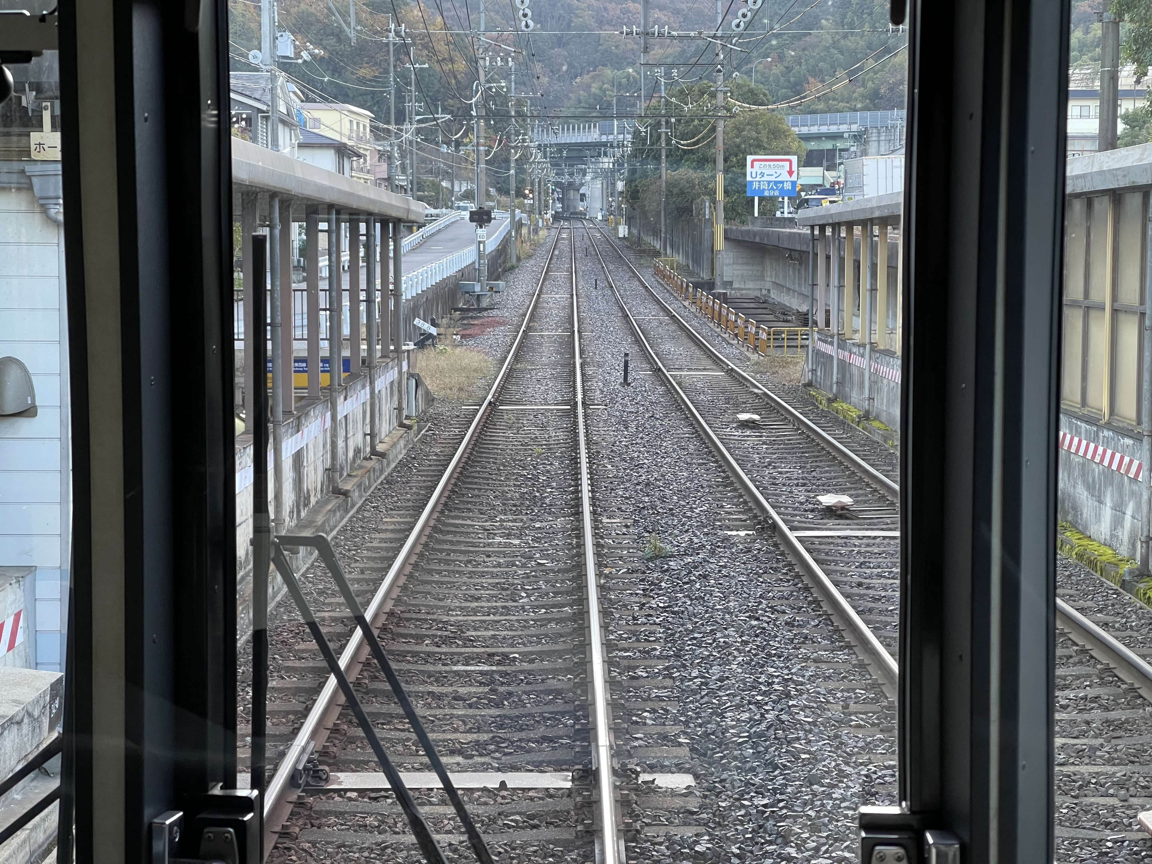 오타니역에 있는 승강장 벤치를 잘 보면 경사를 고려해서 벤치가 기울어져 있네요.