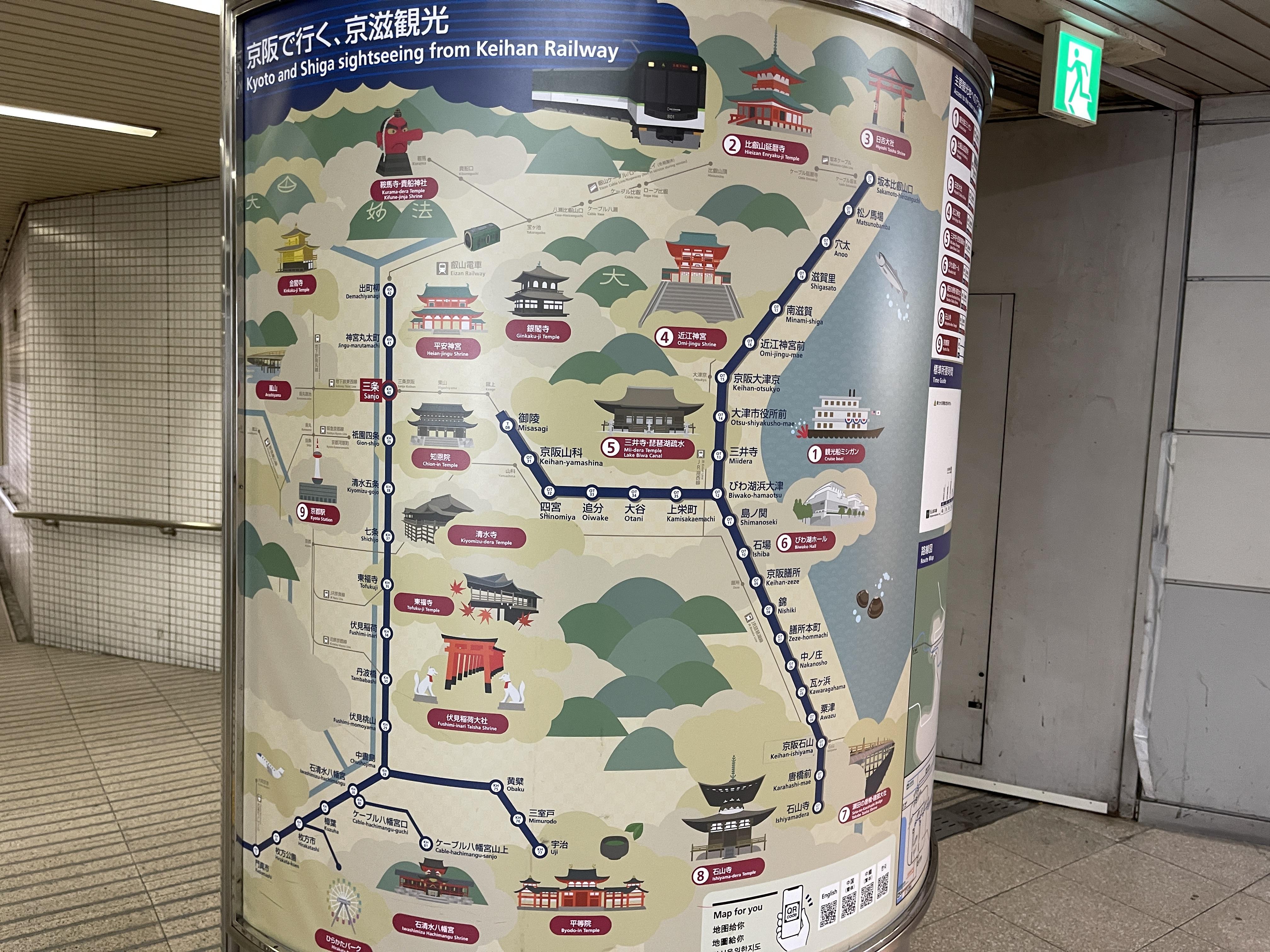 요도야바시역에서는 교토 동쪽 관광지 접근이 좋은 케이한 전철 본선을 탈 수 있습니다.