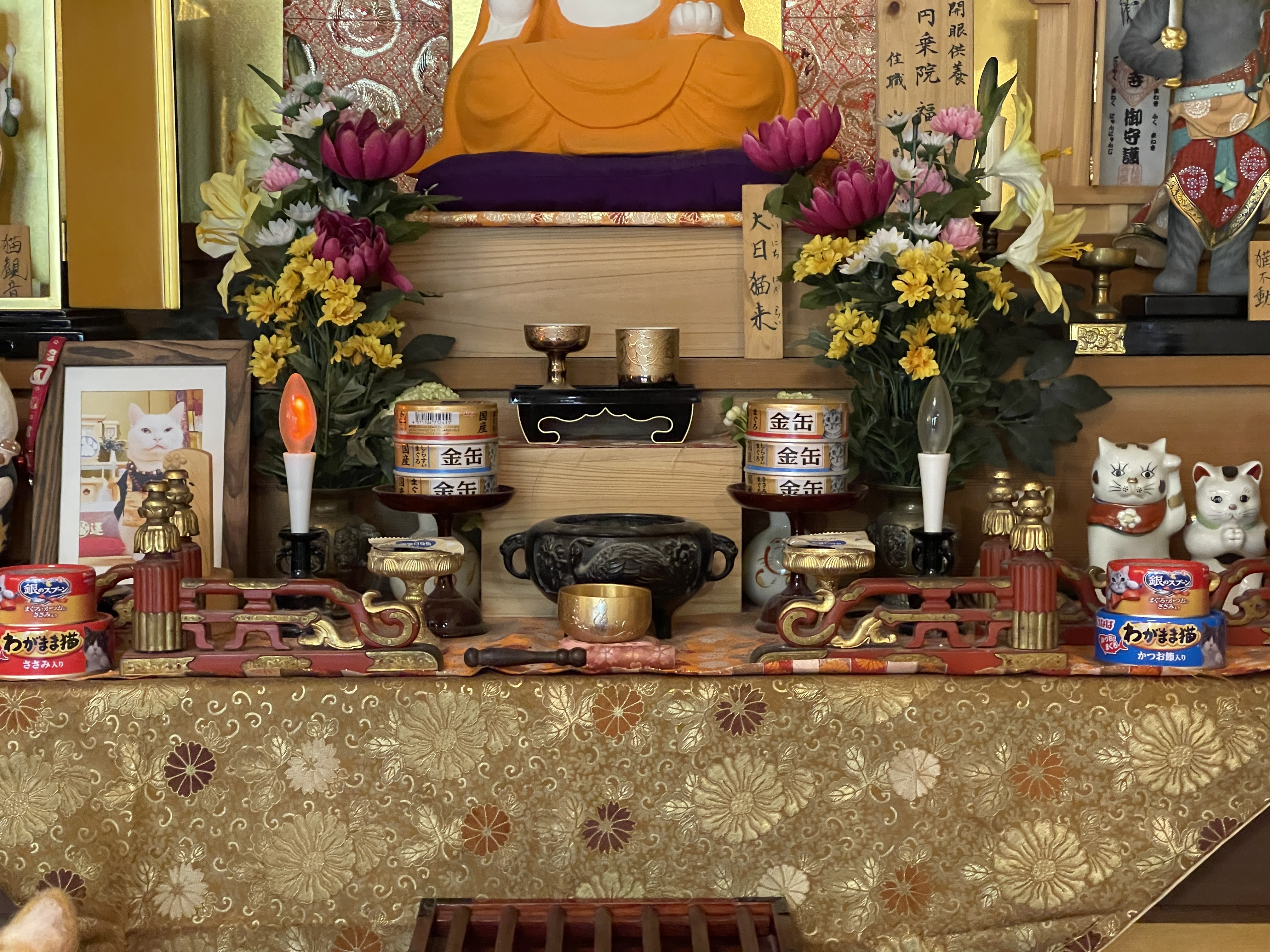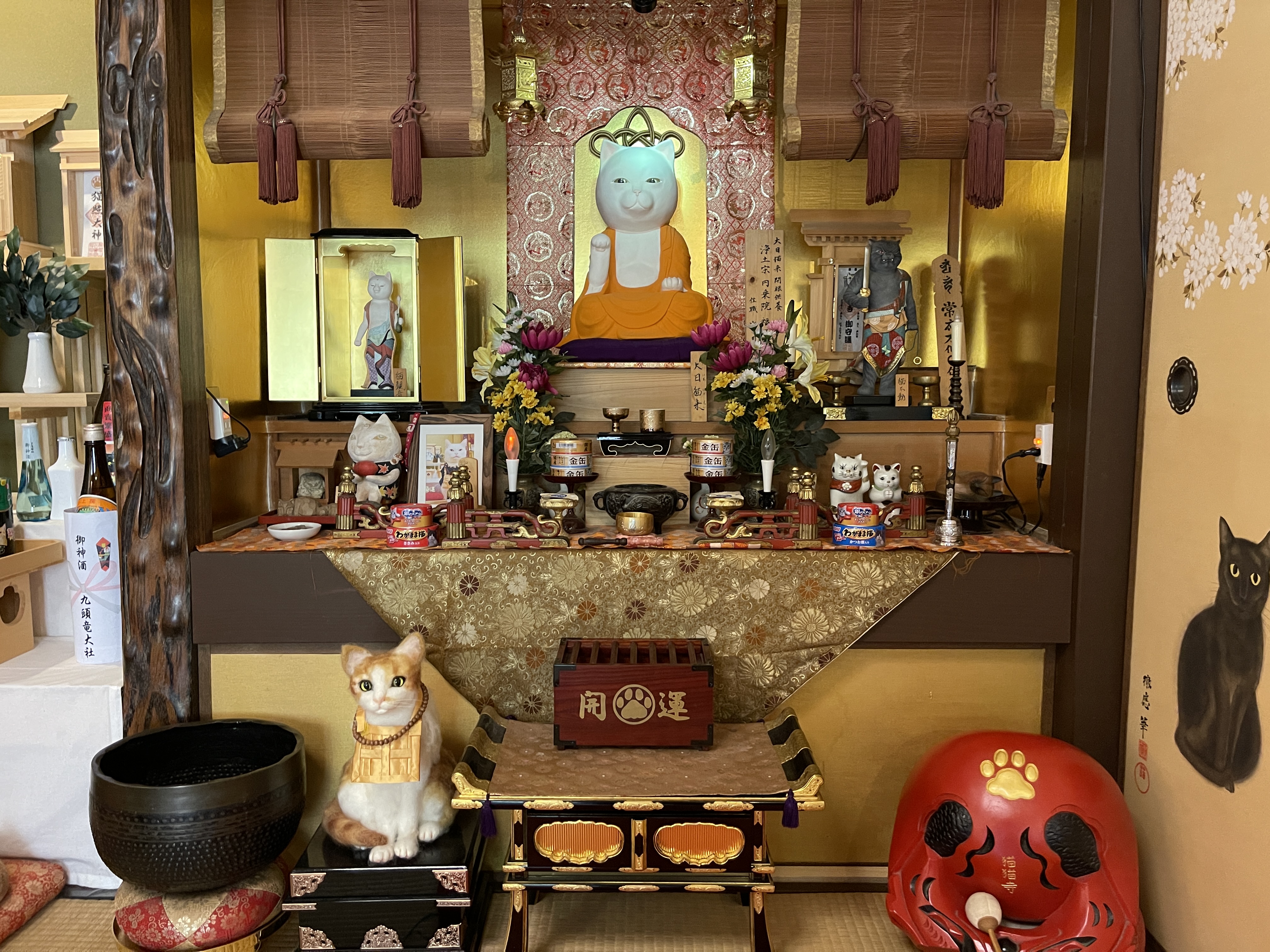 평범한 불상 대신 고양이 본존상이 모셔져 있습니다.