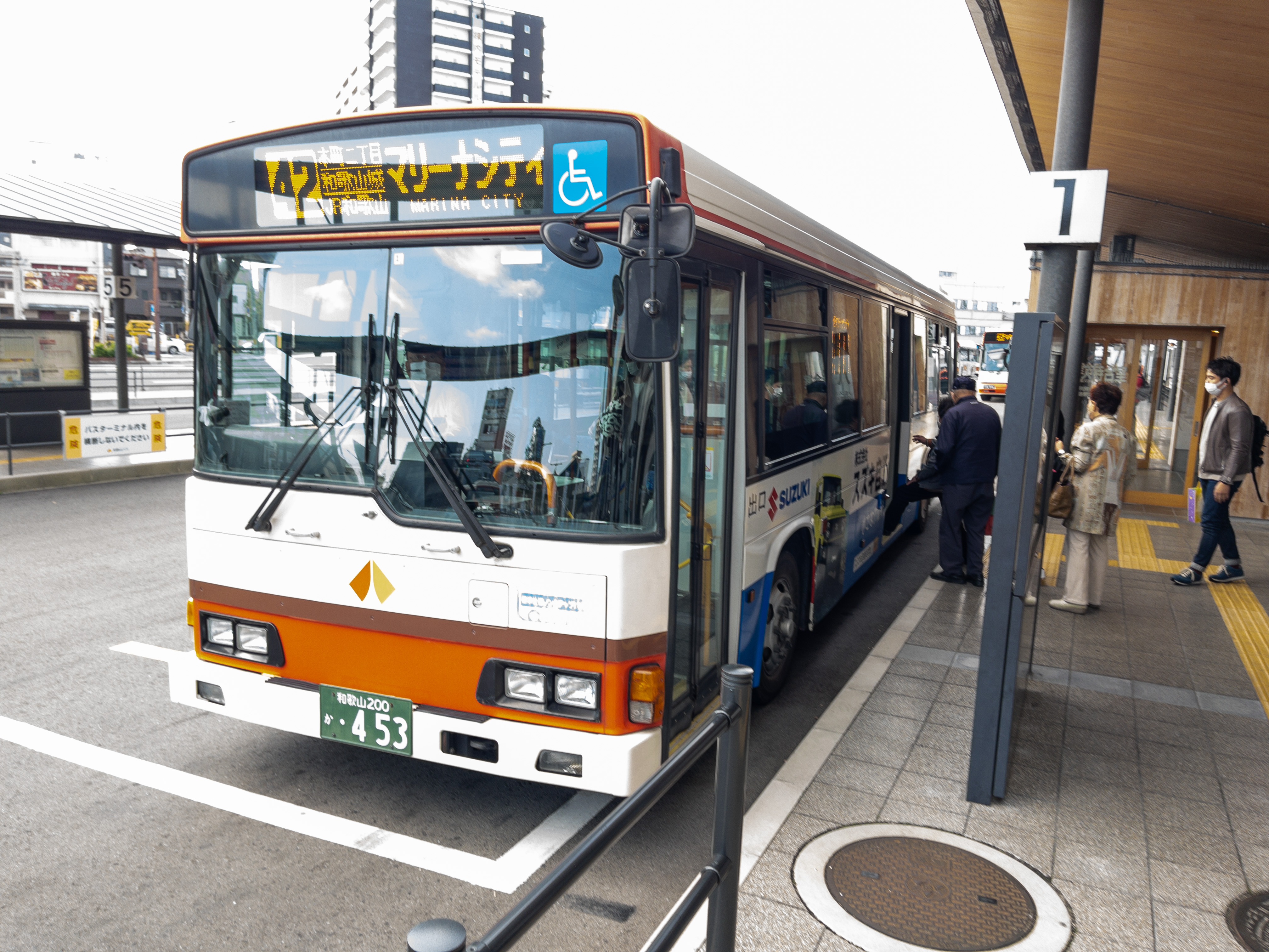 와카야마성, 와카야마역을 거쳐 마리나시티로 가는 42번 버스에 탑니다.