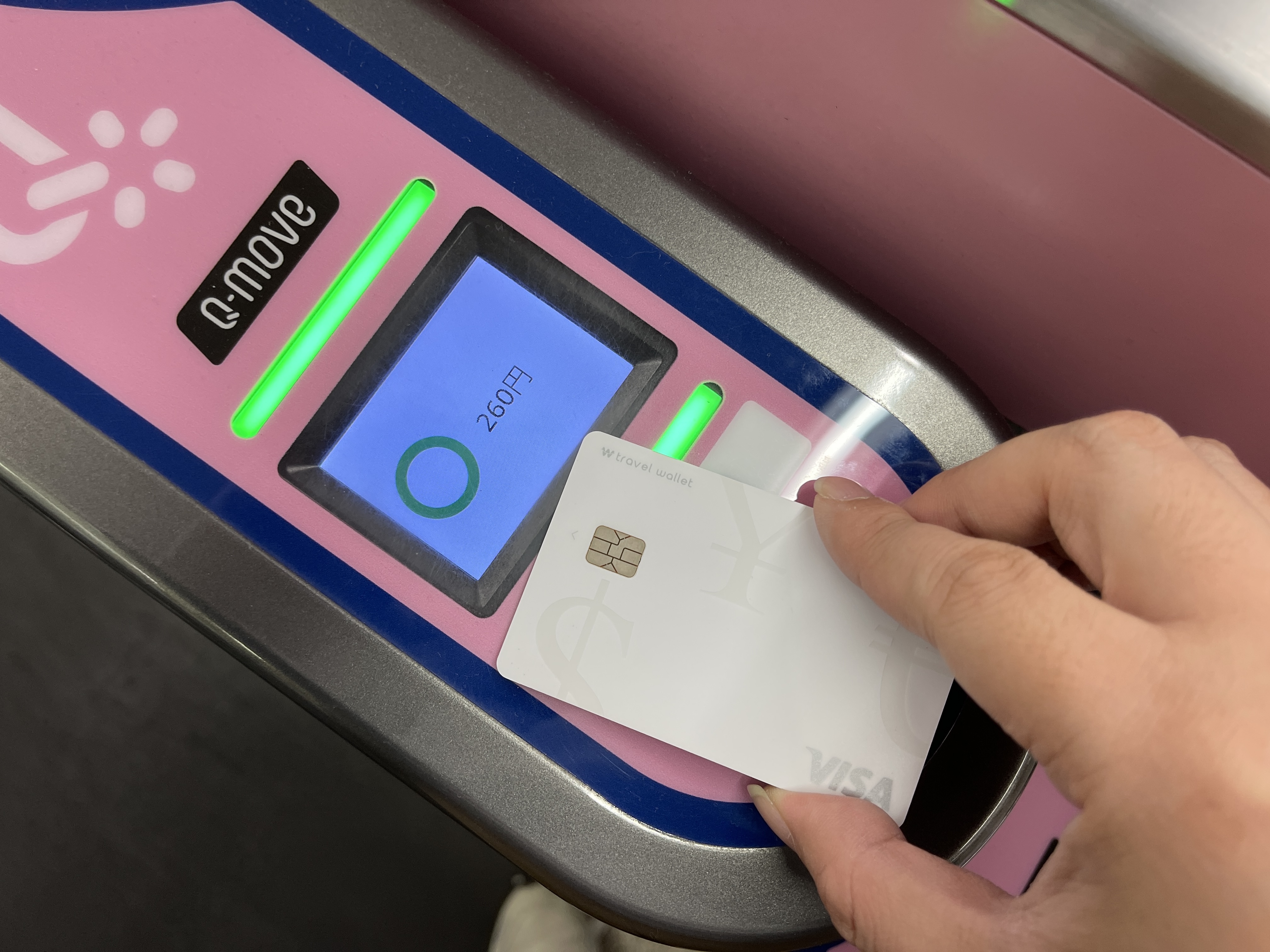 개찰구에 카드를 대니 260엔이 지불된다는 안내문이 뜨는데