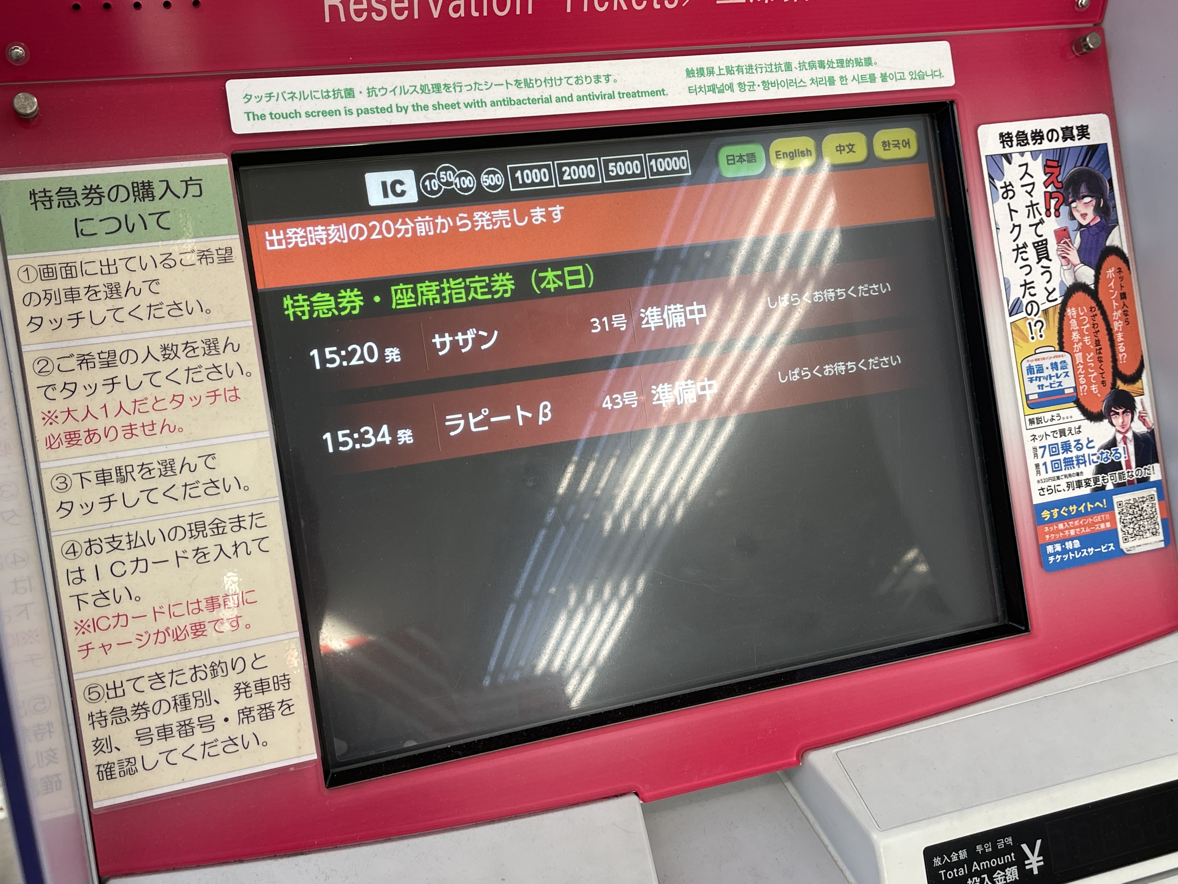 이즈미사노역에서 공항까지는 라피트 특별 요금이 적용돼 100엔만 더 내면 탈 수 있기에