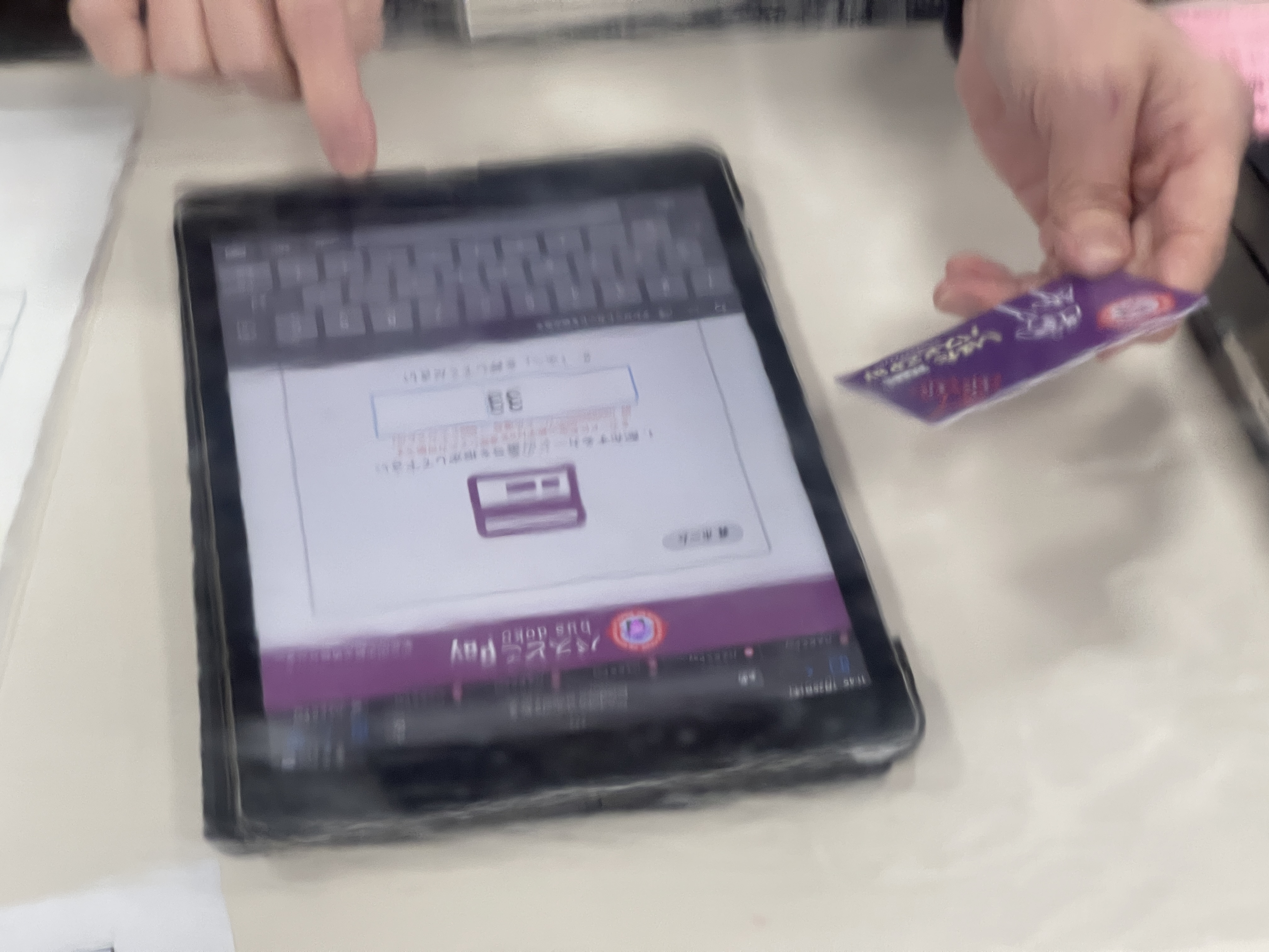 아이패드에 카드 번호를 입력한 뒤 충전할 금액을 눌러 카드 잔액을 충전합니다.