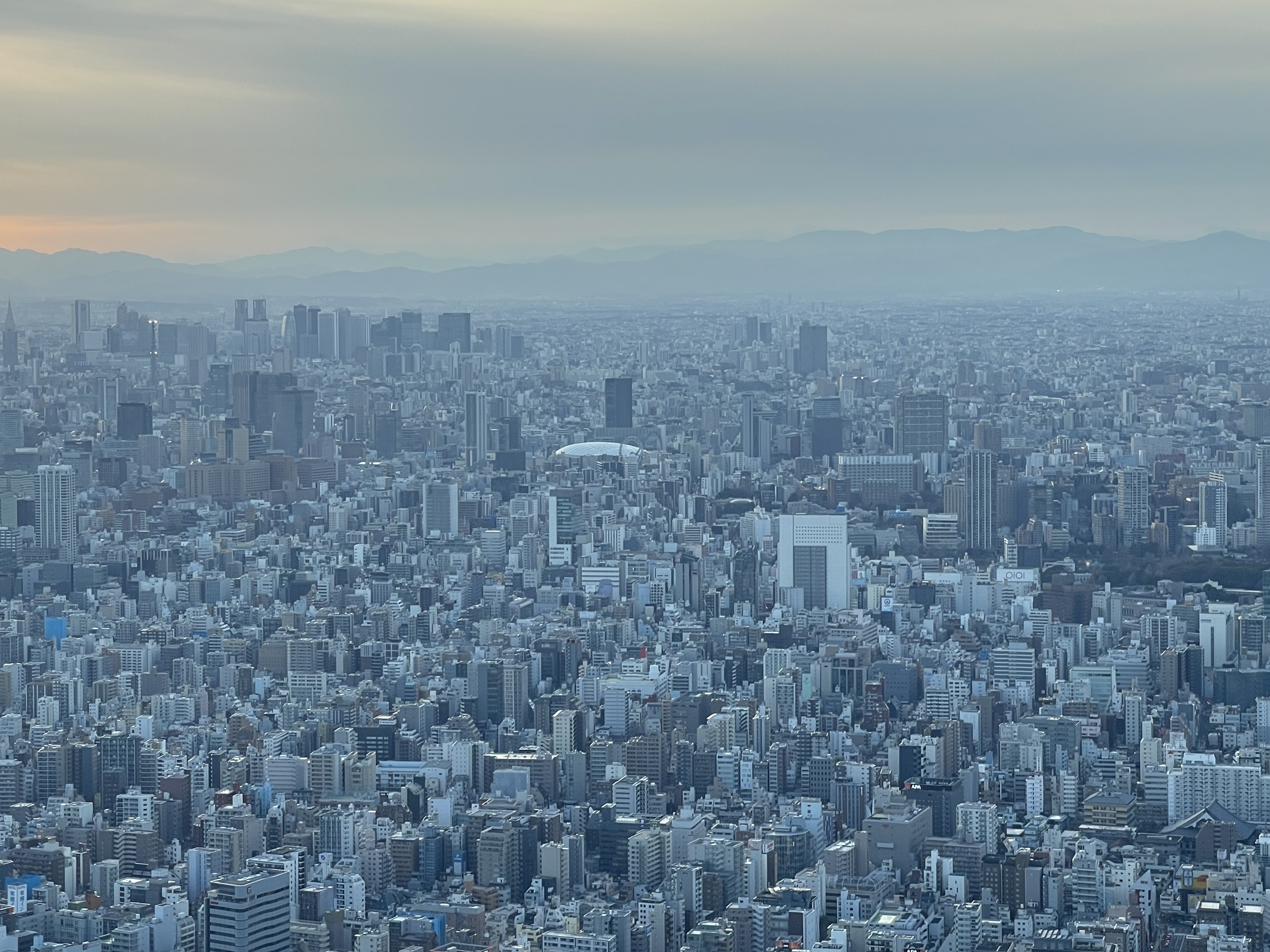 시야를 조금 더 멀리 돌리니 하얀 도쿄돔이 희미하게 보입니다.