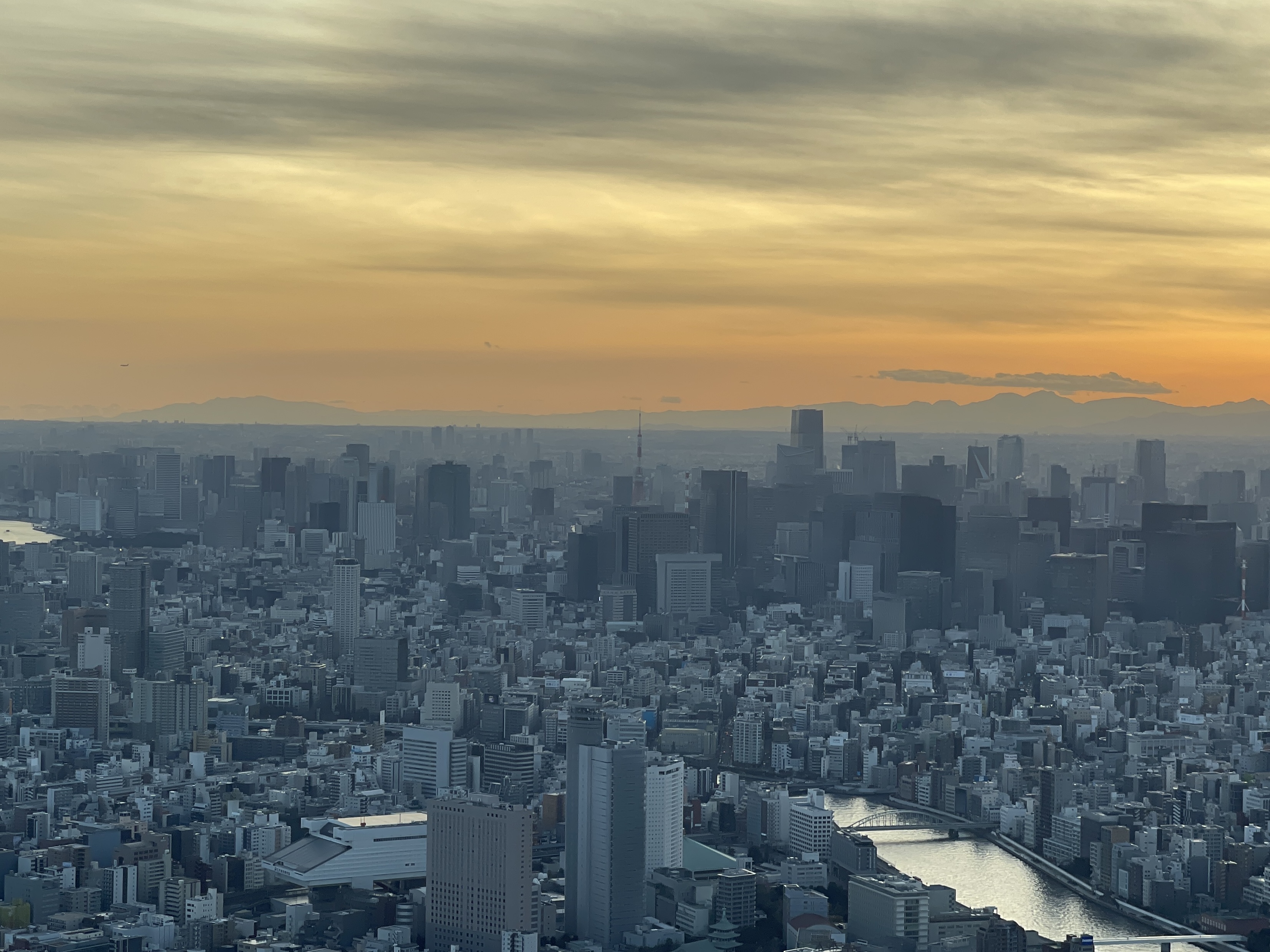해가 지면서 서서히 노을이 물드는 도쿄의 모습인데