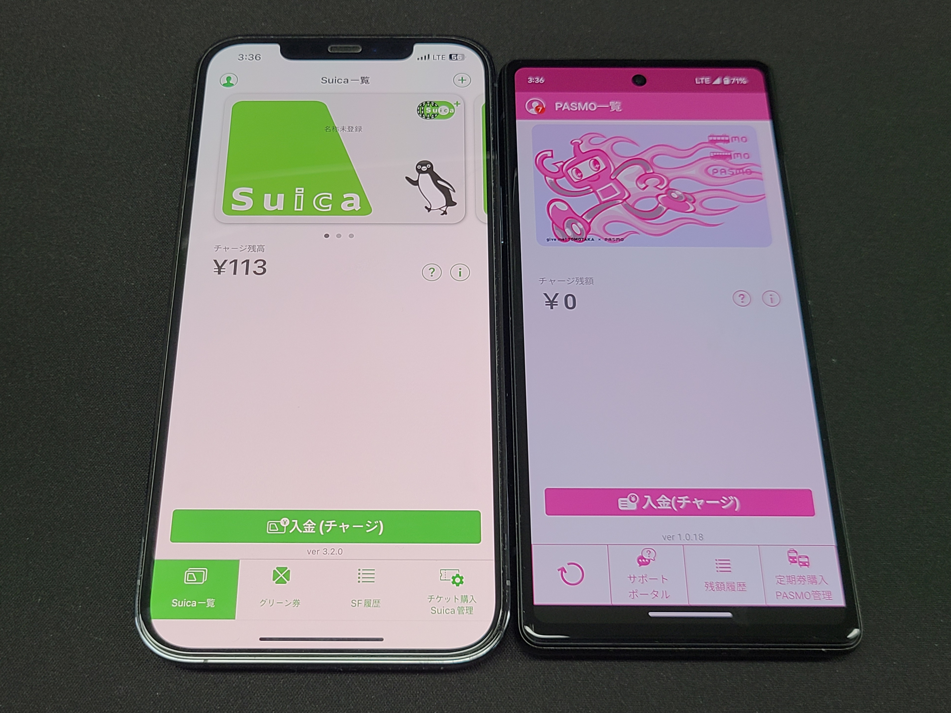 모바일 스이카 앱이나 모바일 파스모 앱에서는 500엔 단위로 충전할 수 있고