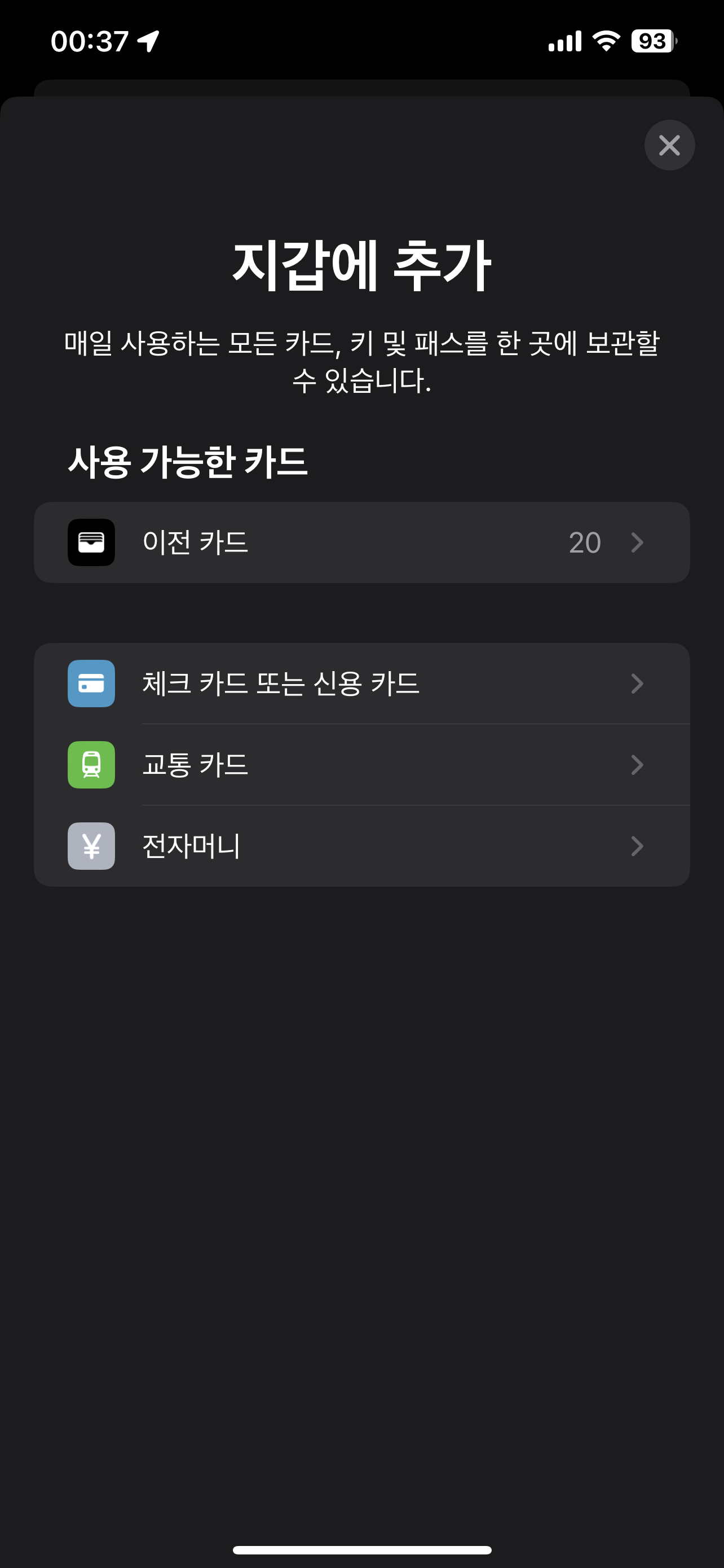 정기권을 담을 수 없는 카드라서 애플페이로 카드를 옮길 수 없습니다.