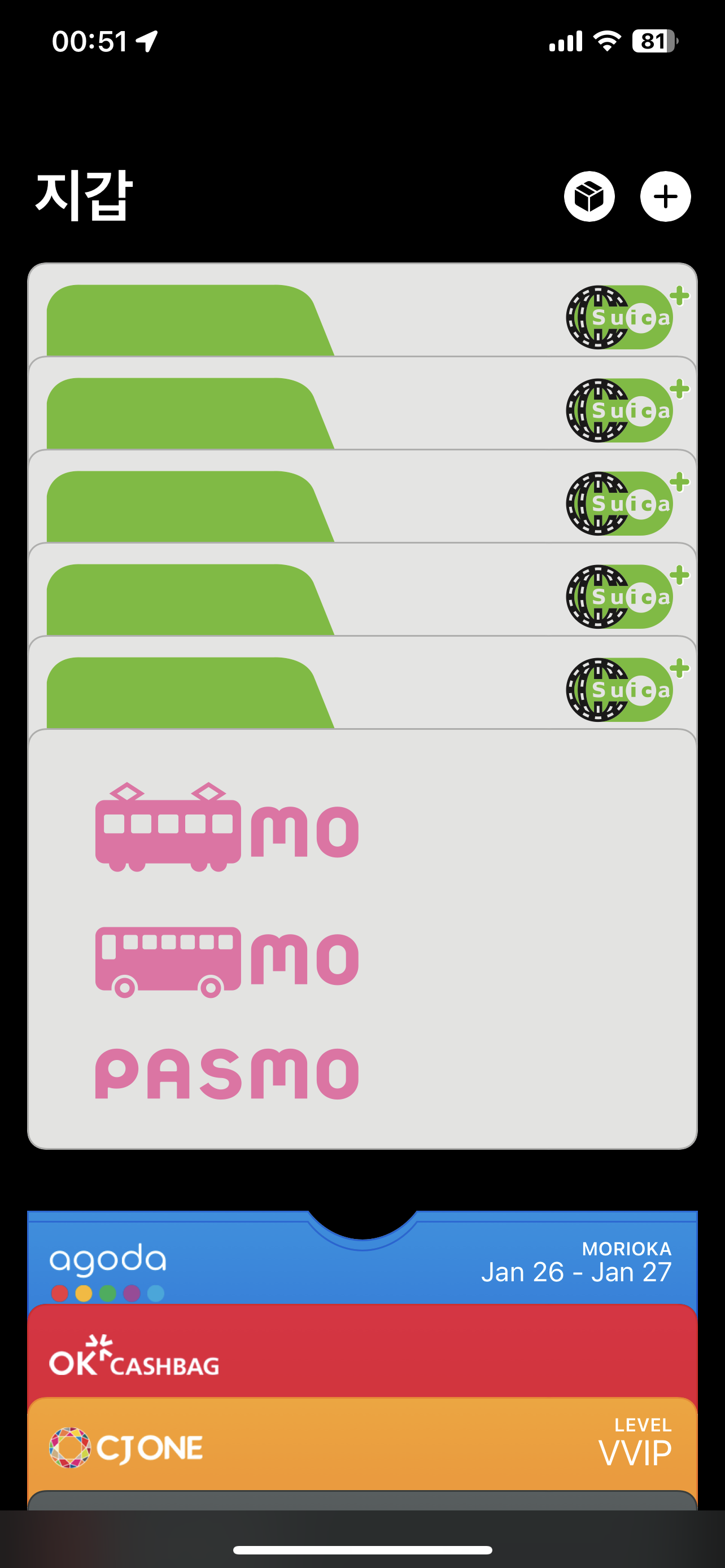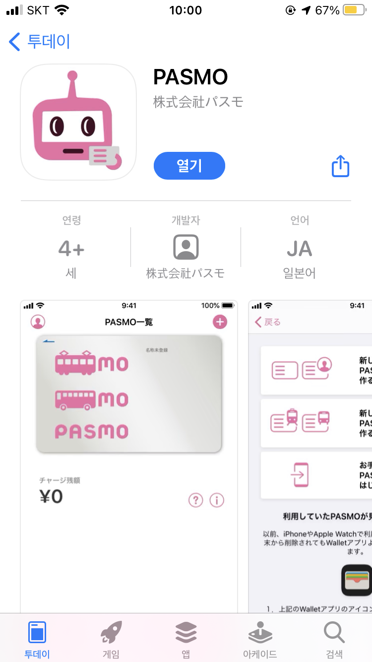 파스모 역시 철도 회사나 버스 회사에서 발행한 파스모만 아이폰에 넣을 수 있고