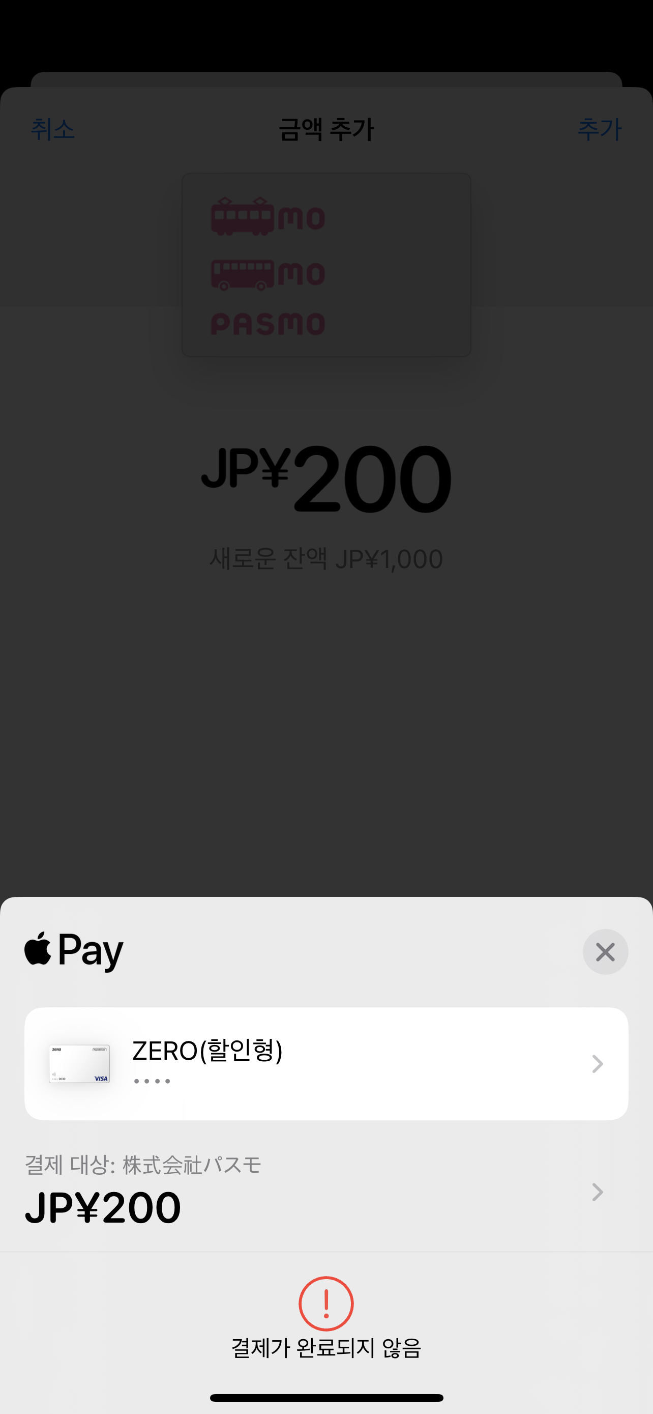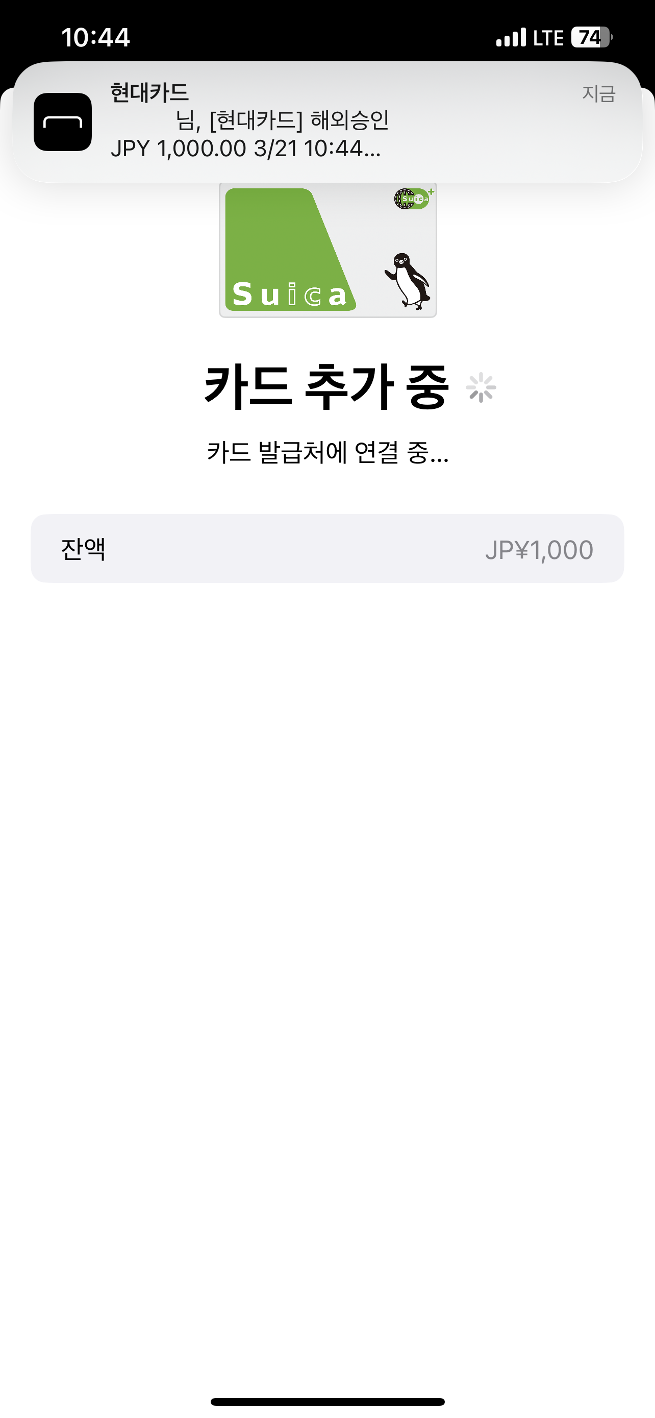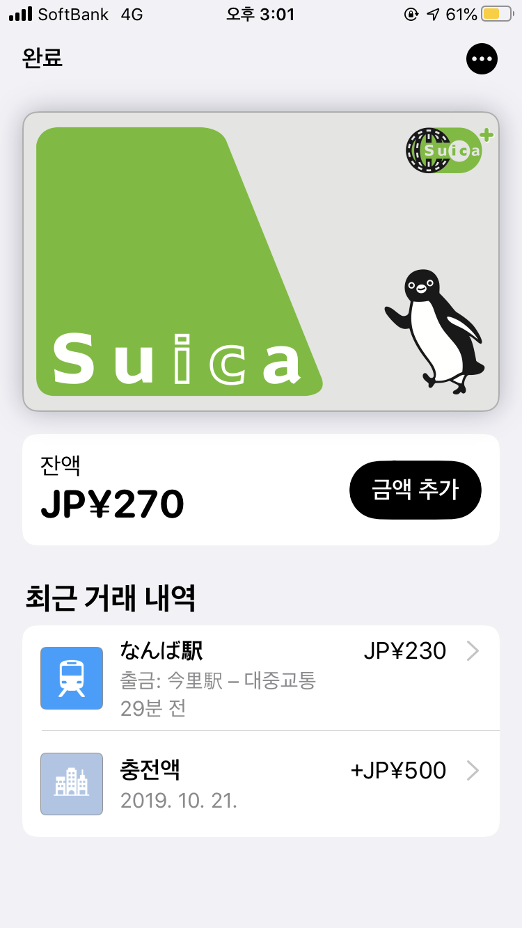해외에서 발행한 비자카드는 애플페이에서 스이카 충전이 되다 안되다 하는데