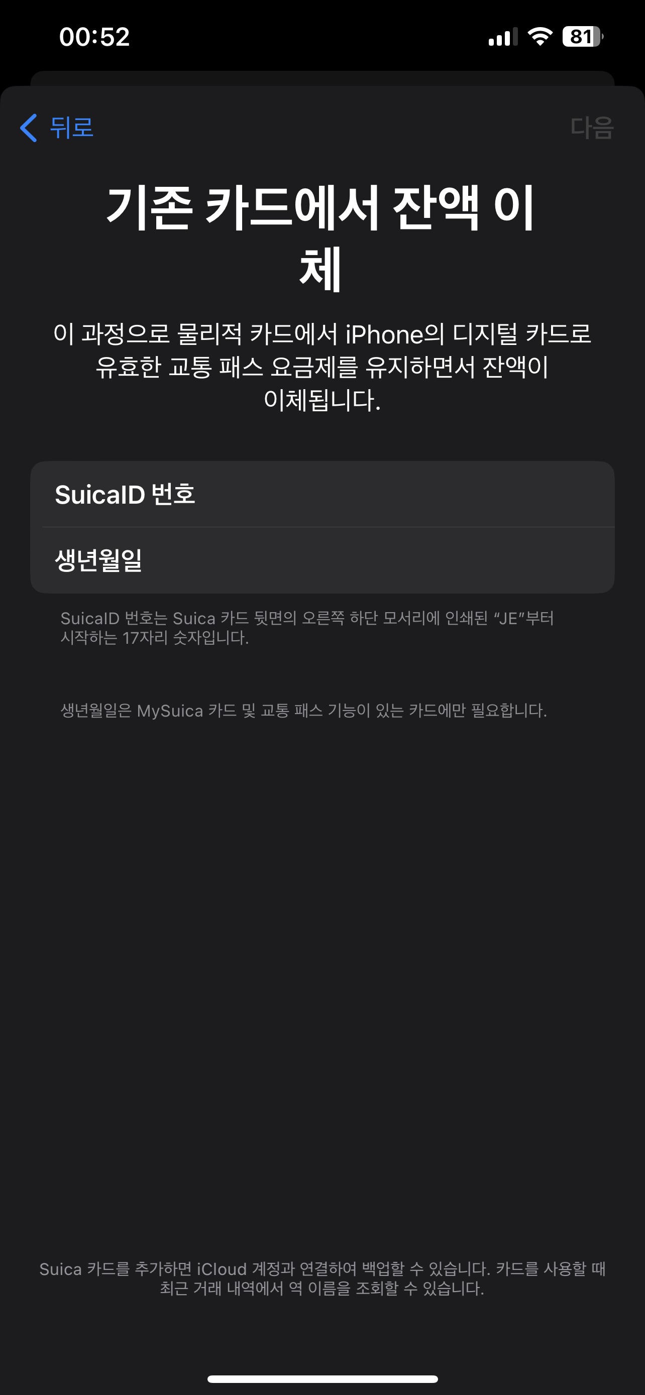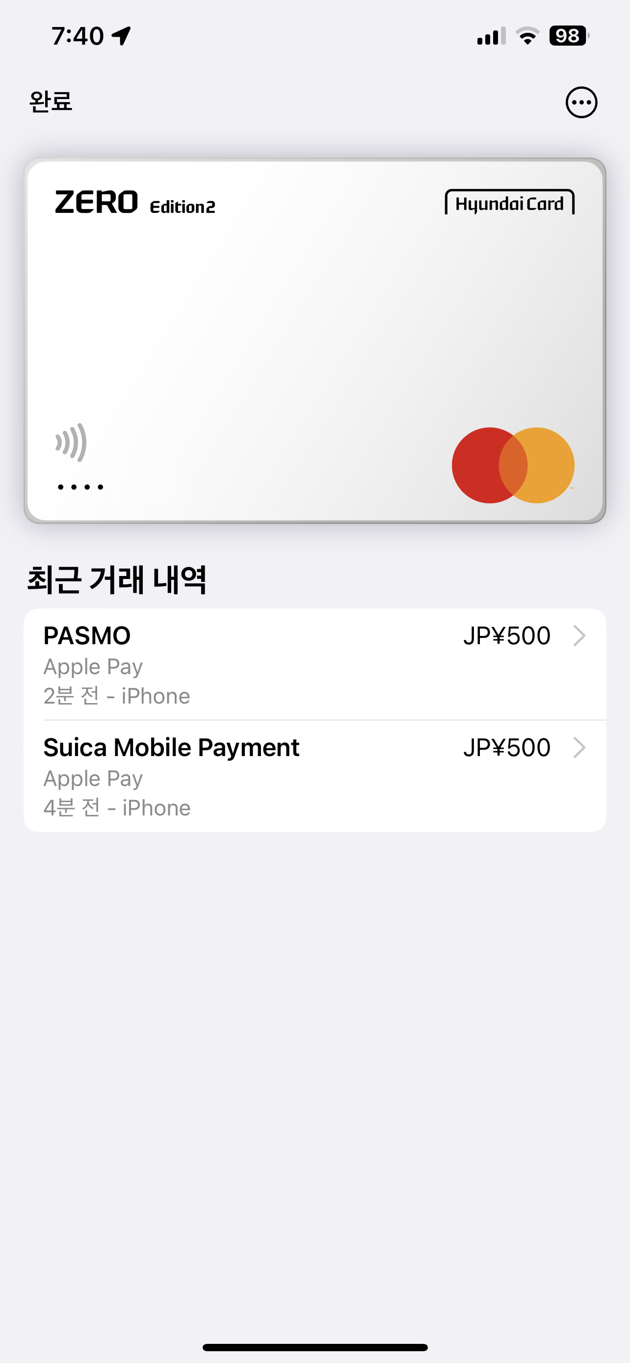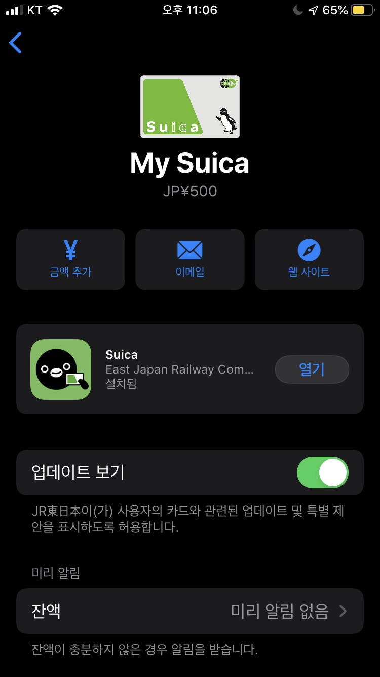 해외에서 발행한 비자카드는 애플페이에서 스이카 충전이 되다 안되다 하는데