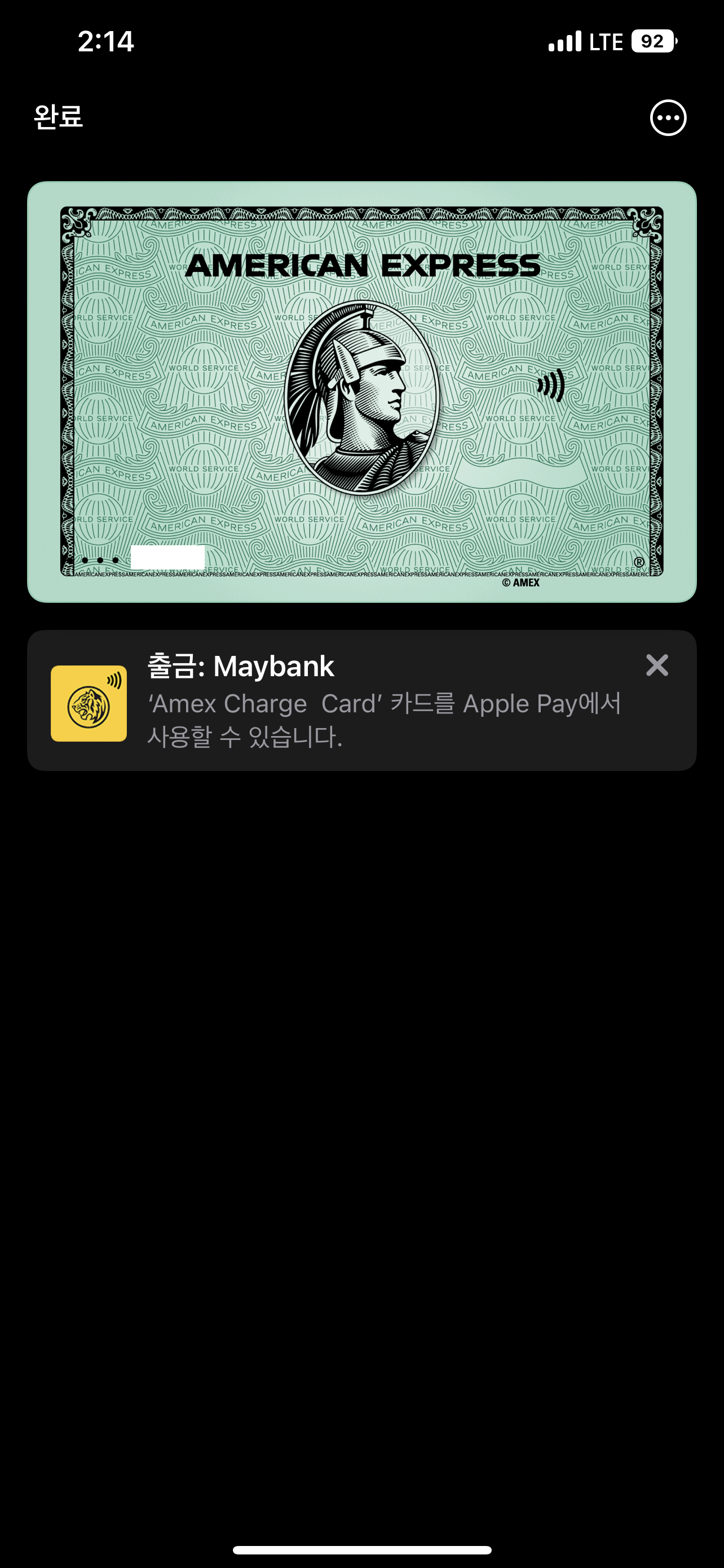 아멕스의 경우 하나 아멕스 카드 등록에 성공했다고 하네요.