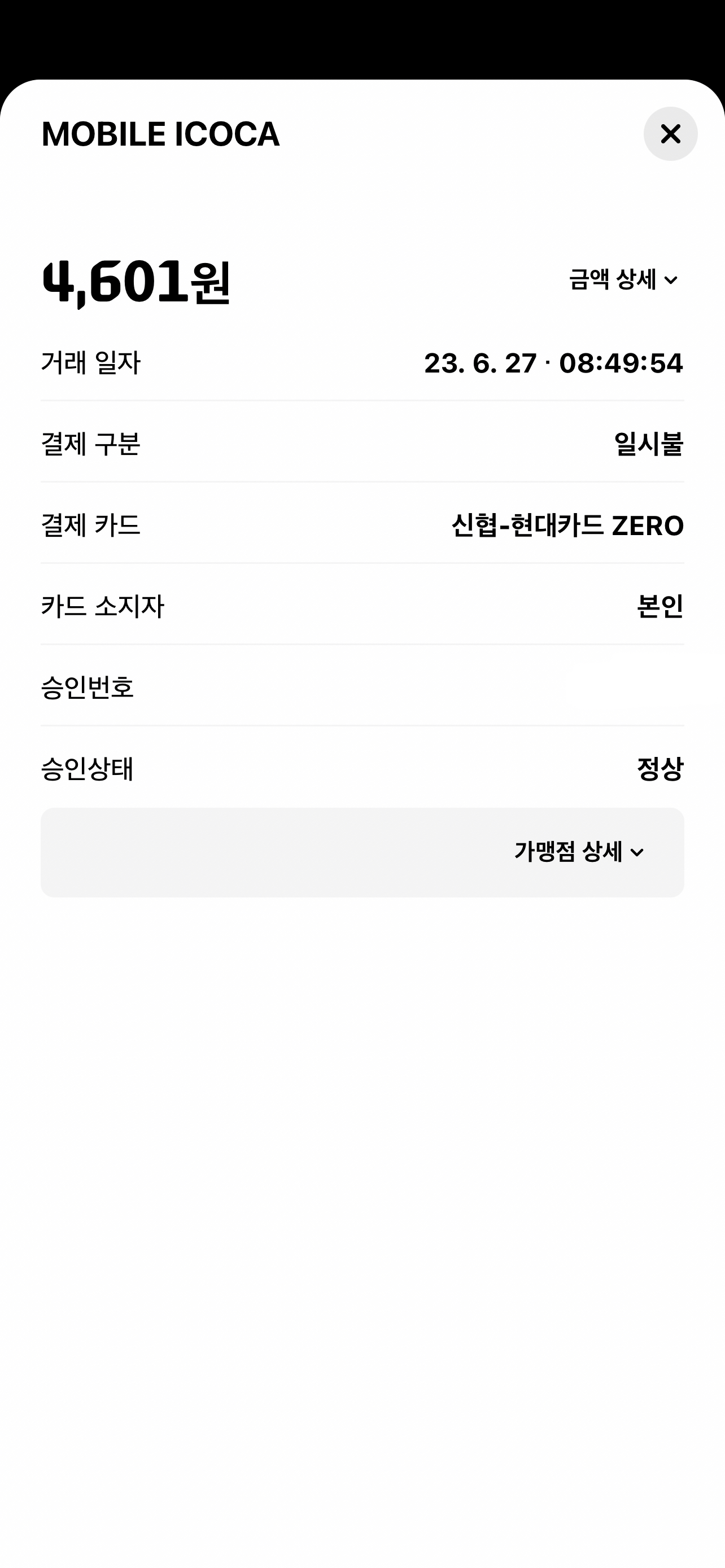 2023년 6월 30일 저녁쯤 비자카드도 튕겨내기 시작했습니다.