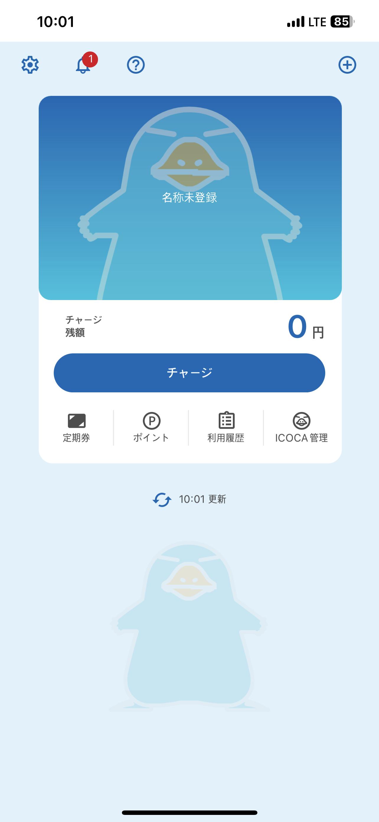 신용카드를 등록했으면 스이카 메인 화면에서 충전(入金(チャージ)) 버튼을 눌러