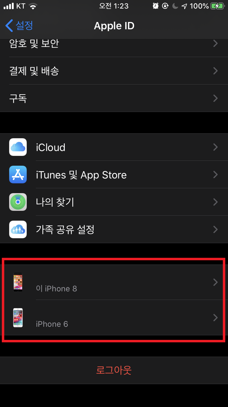 아래에 있는 애플 계정에 연결된 단말기 중 예전에 쓰던 아이폰을 선택하고