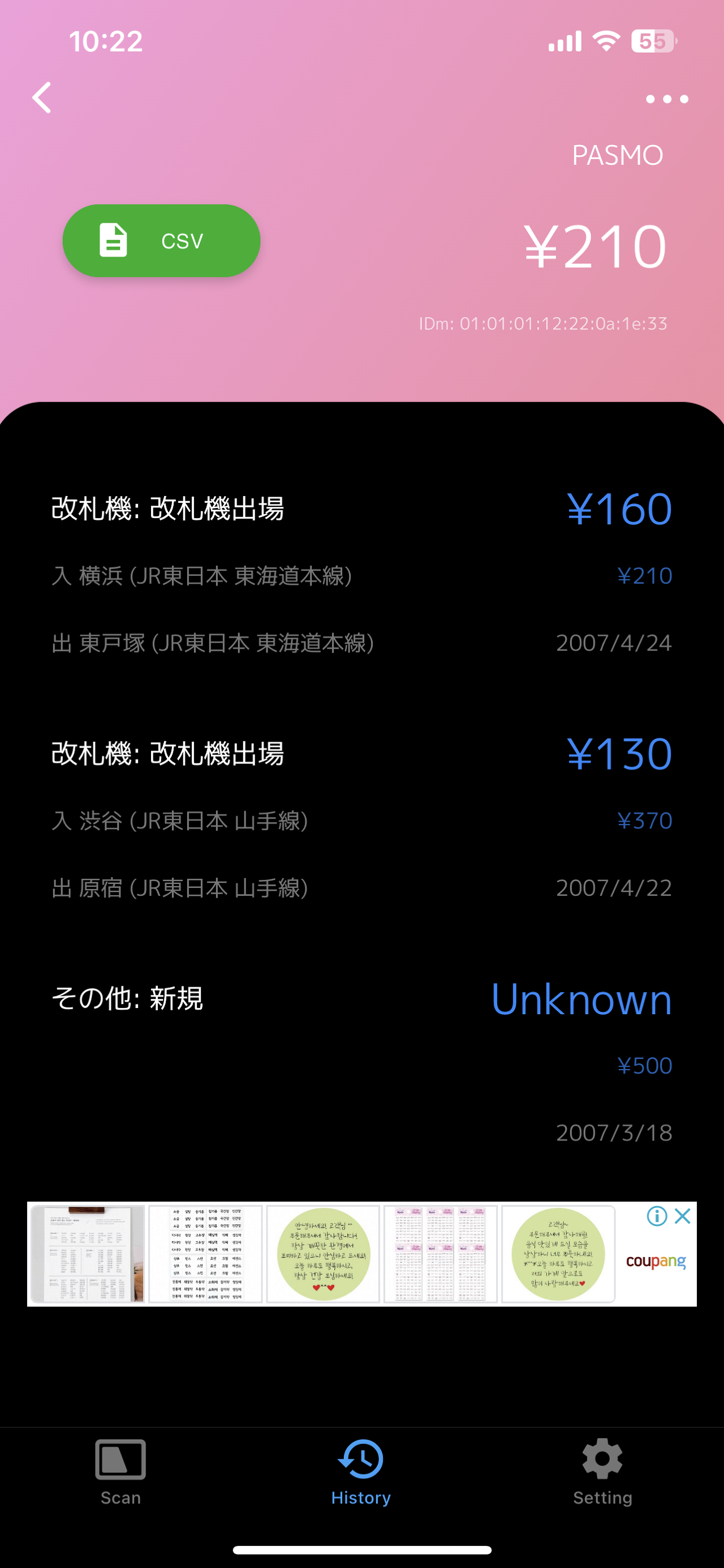 왼쪽 스크린샷을 보면 파스모 마지막 사용일이 2007년 4월 24일이라