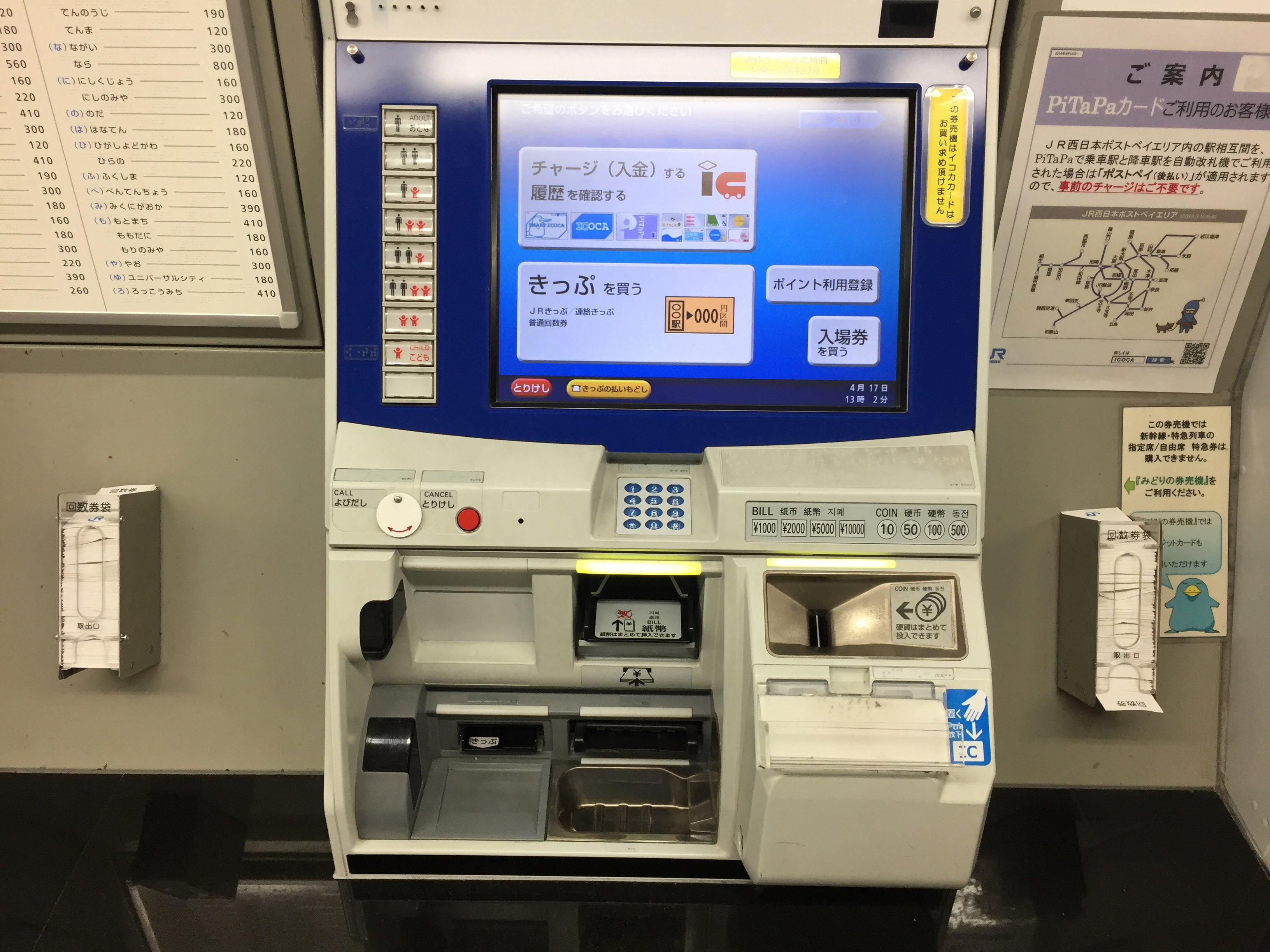 카드를 올려두고 충전할 수 있는 승차권 발매기를 설치한 역에 방문했다면