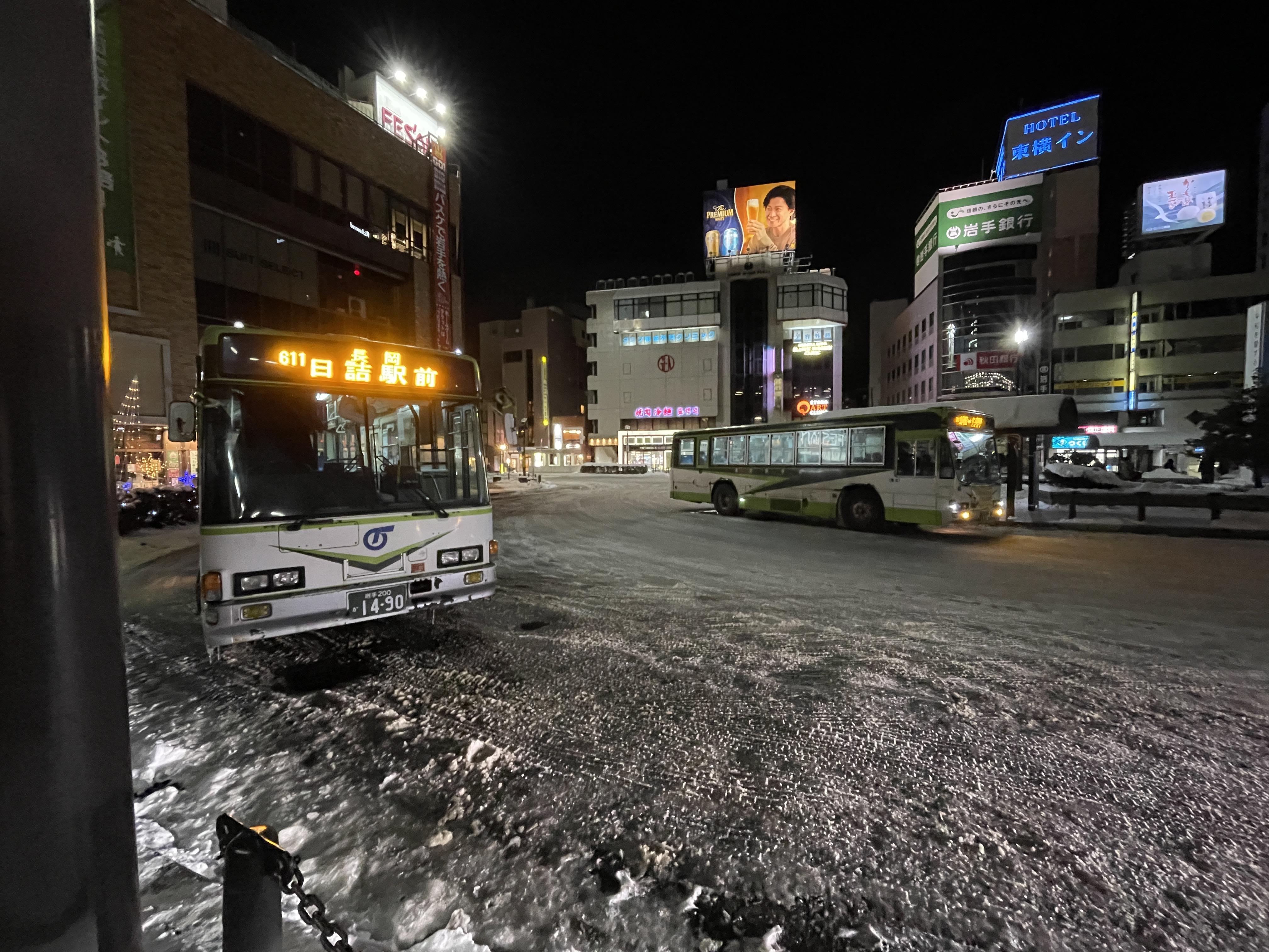 모리오카역에서 버스를 타고 이동하는데요.