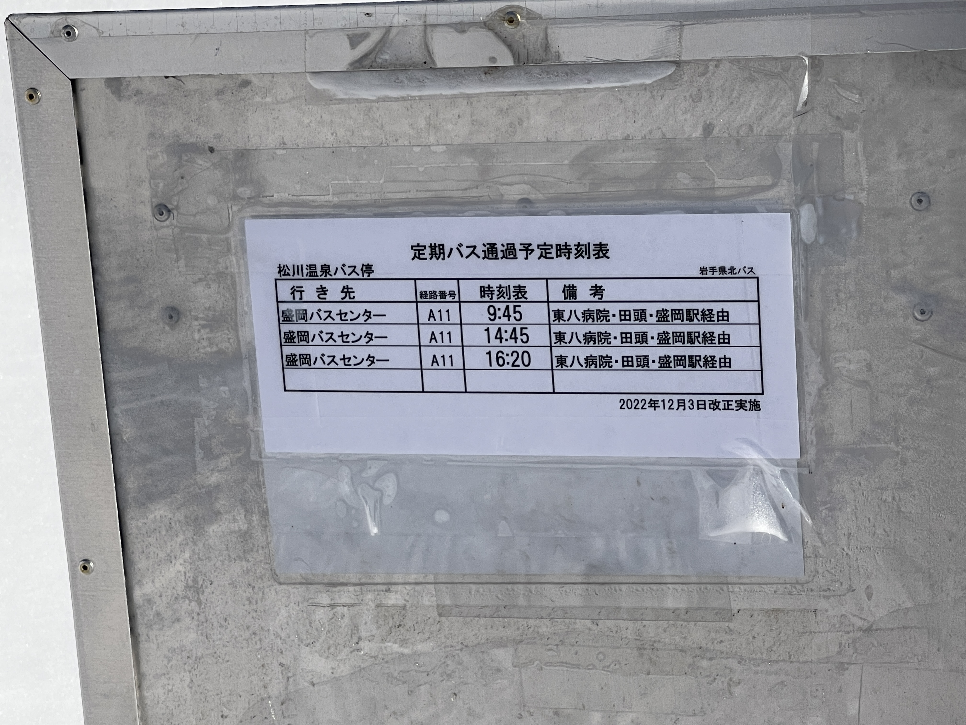 이날 탈 버스는 6시 45분에 모리오카 버스 센터를 출발하는 마츠카와온천행 시내버스입니다.
