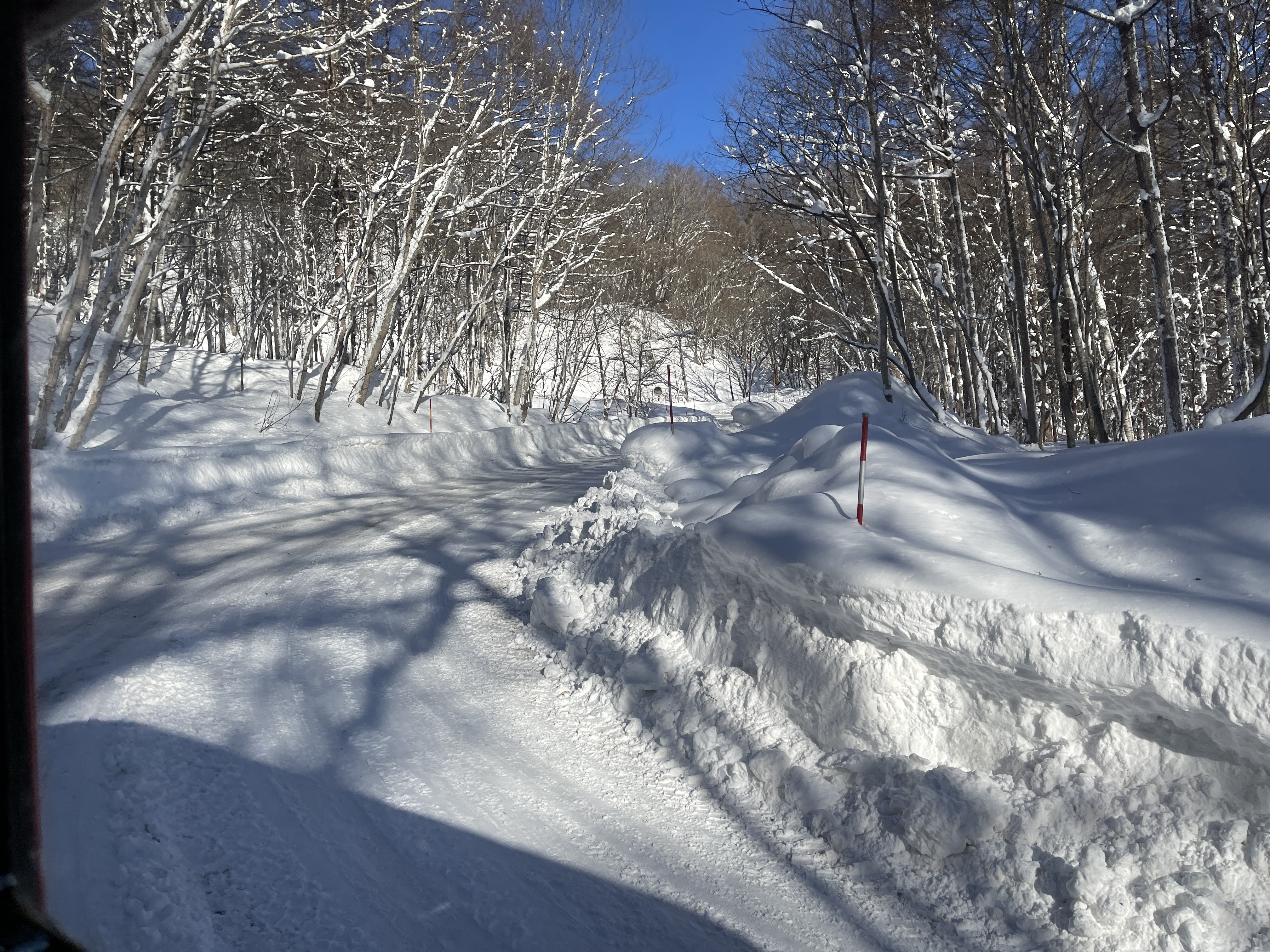 눈이 많이 내리면 어디가 인도이고 어디가 차도인지 구분이 가지 않으니 저 막대를 보고 다니는 것 같습니다.