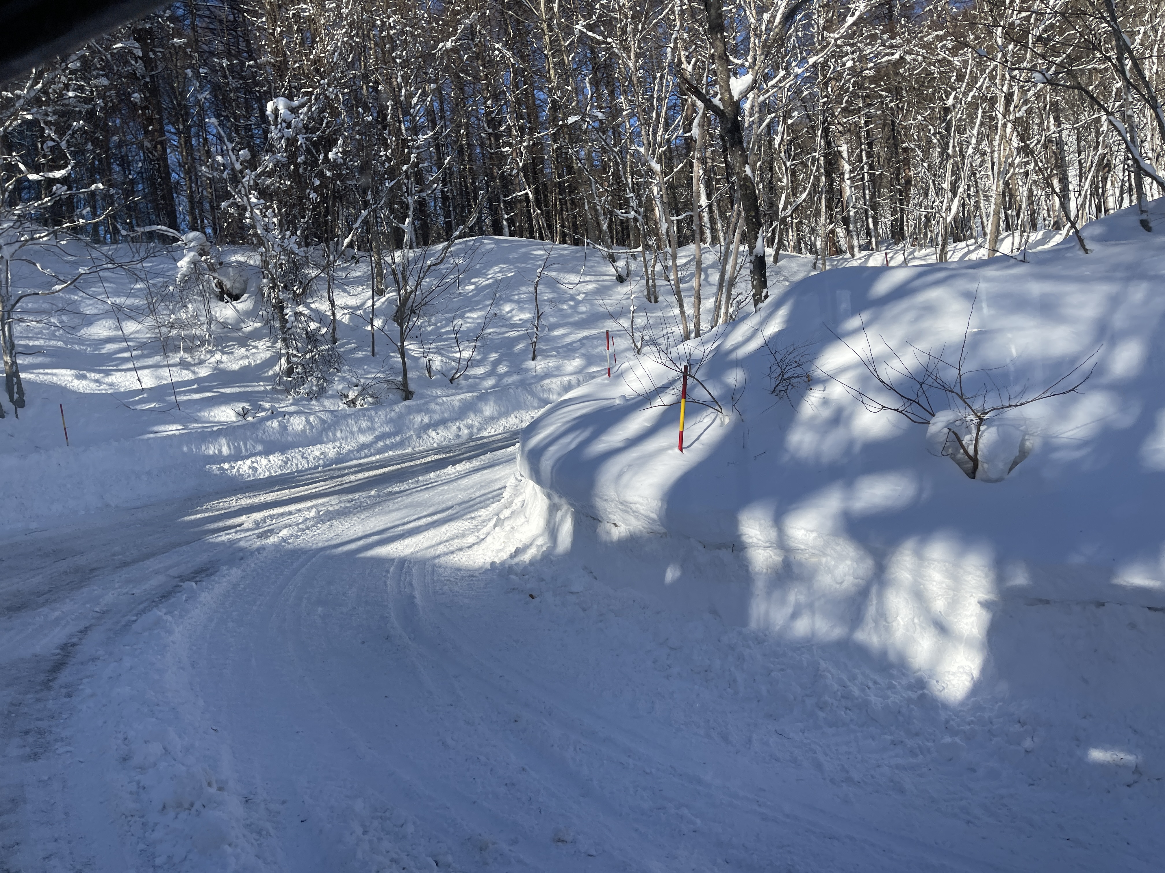 눈으로 덮인 길을 달리는데