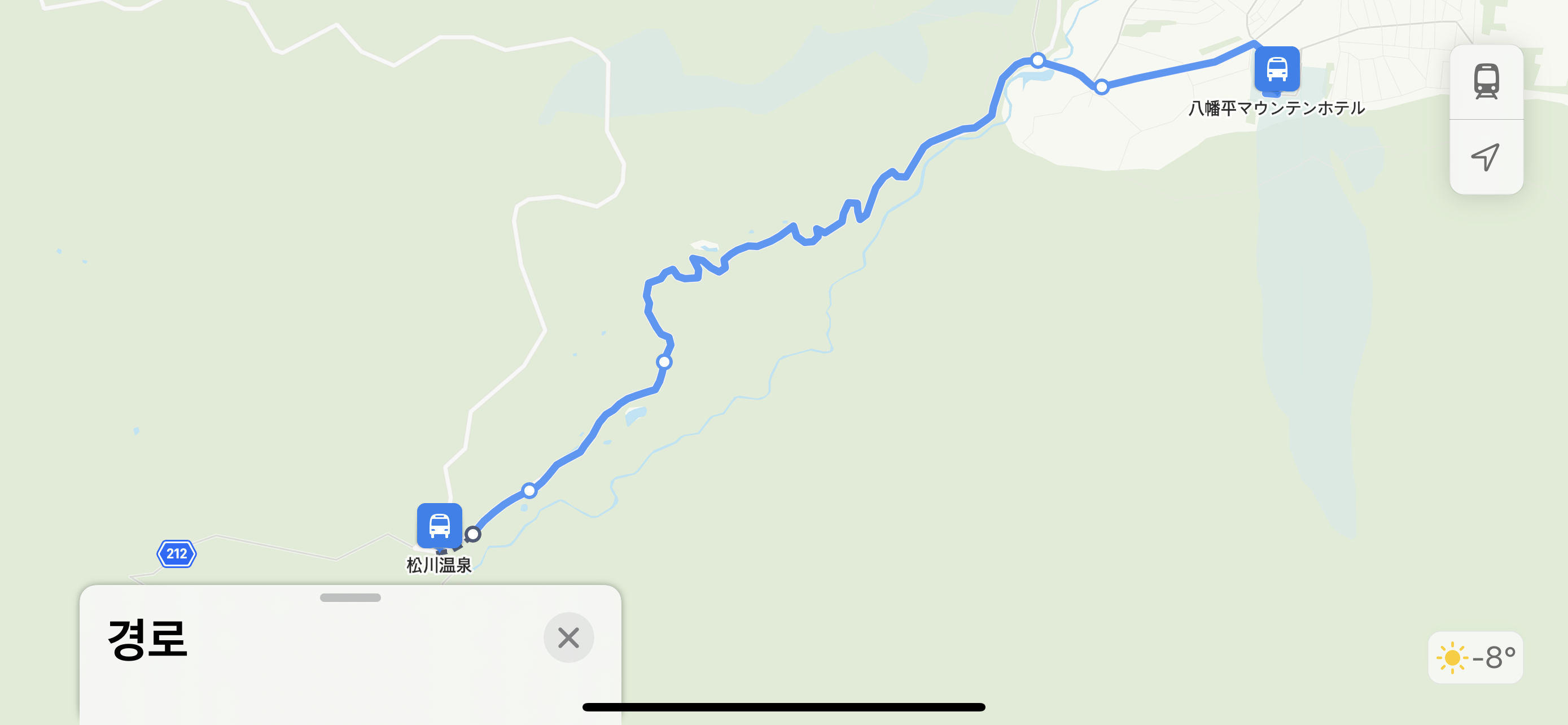 동계 시즌에는 하치만타이마운틴호텔 정류장에서 종점 마츠카와온천 정류장까지