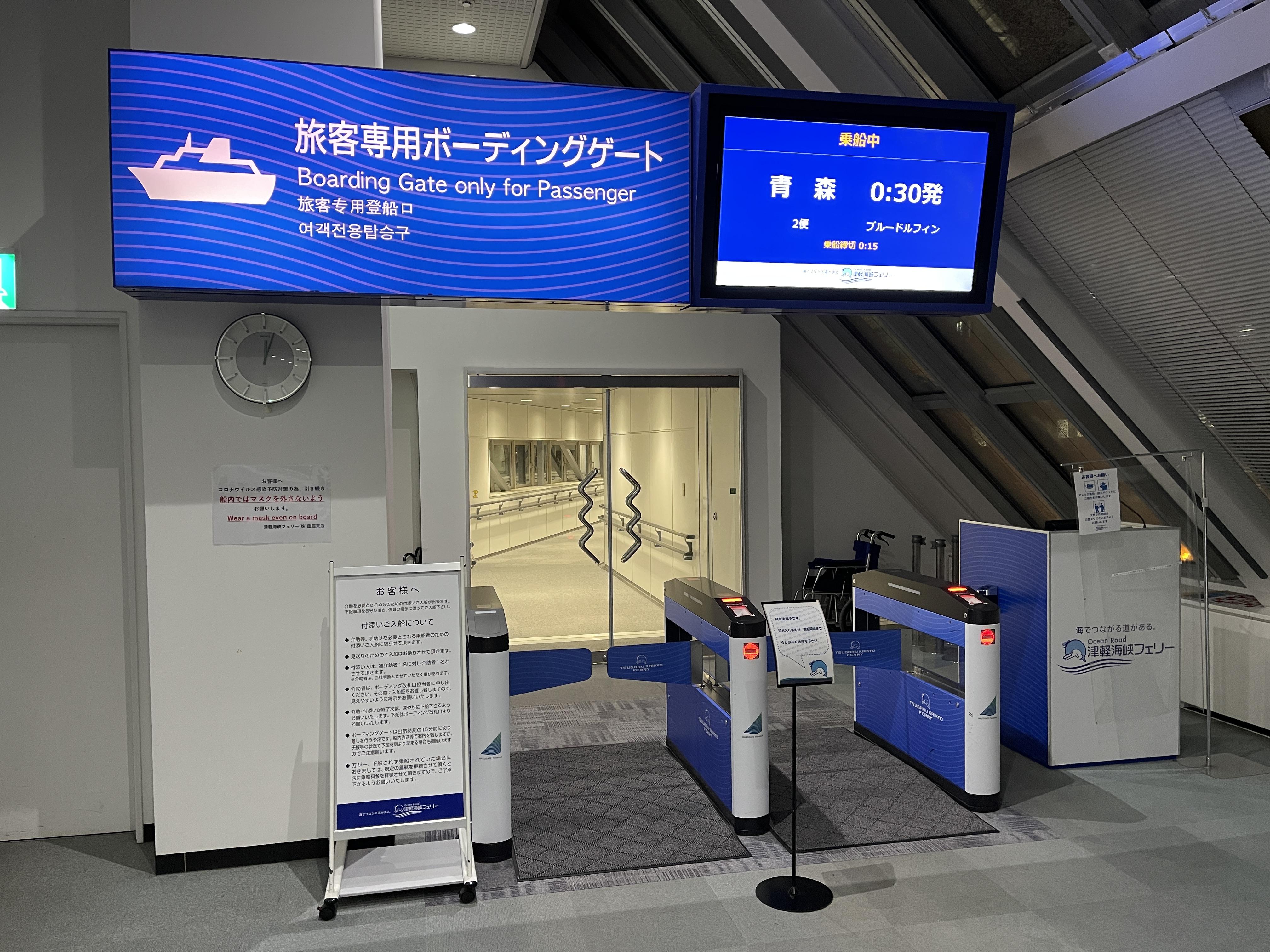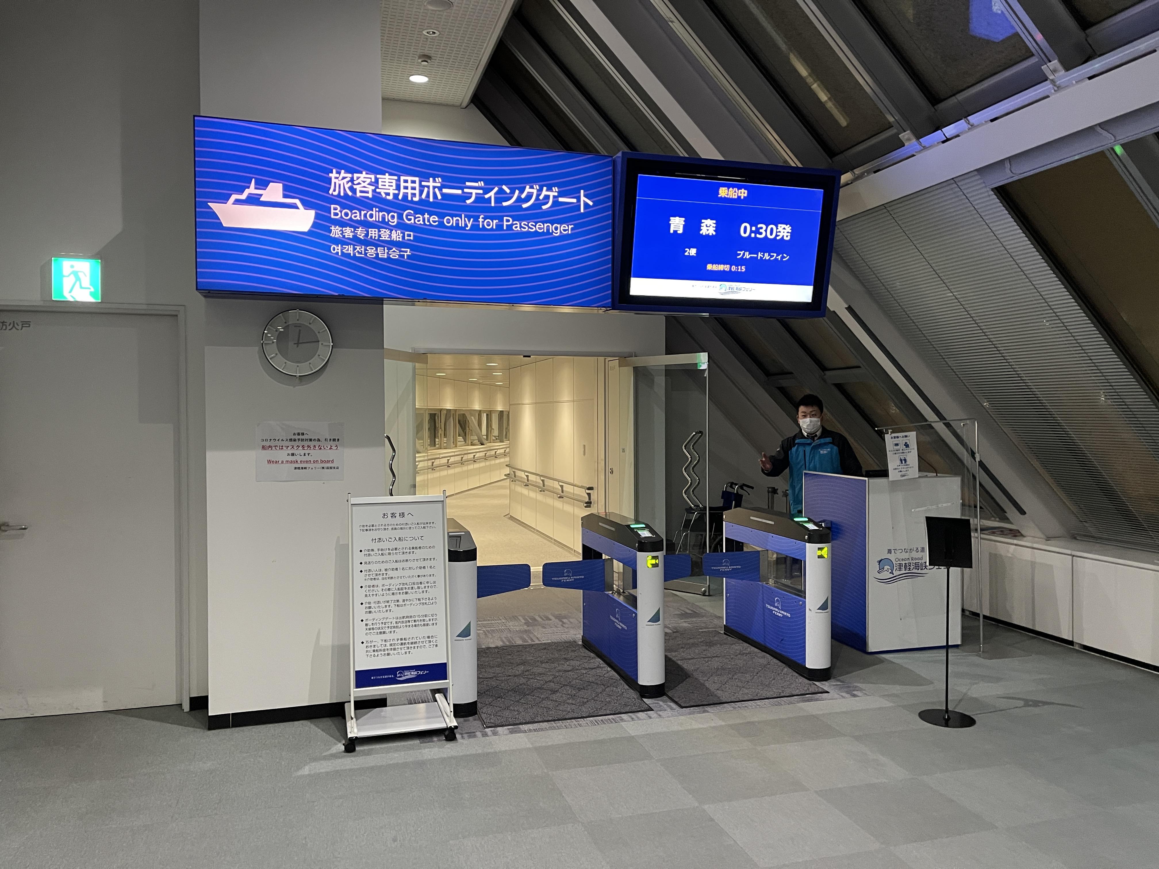 0시 30분에 하코다테를 출발하는 블루 돌핀을 타려고 카운터에 가니