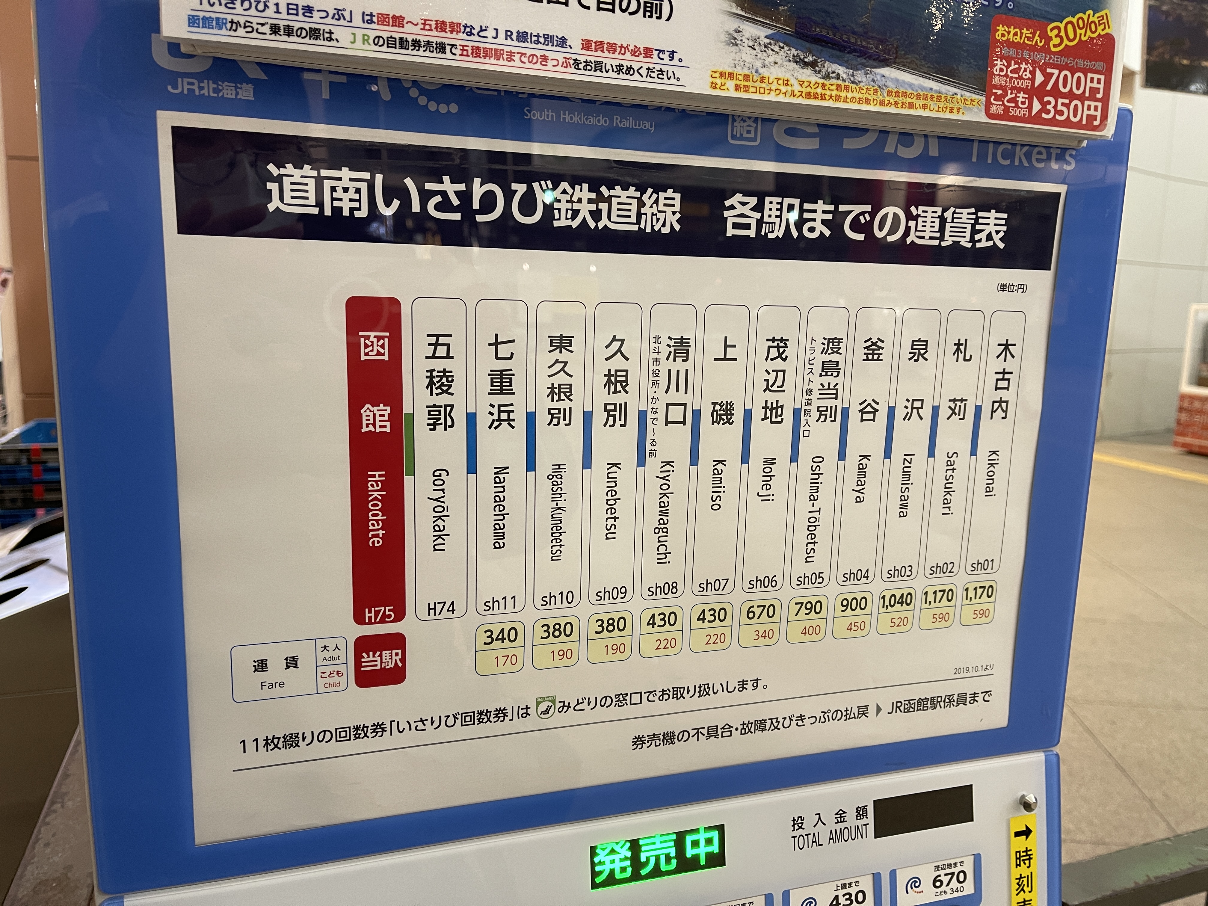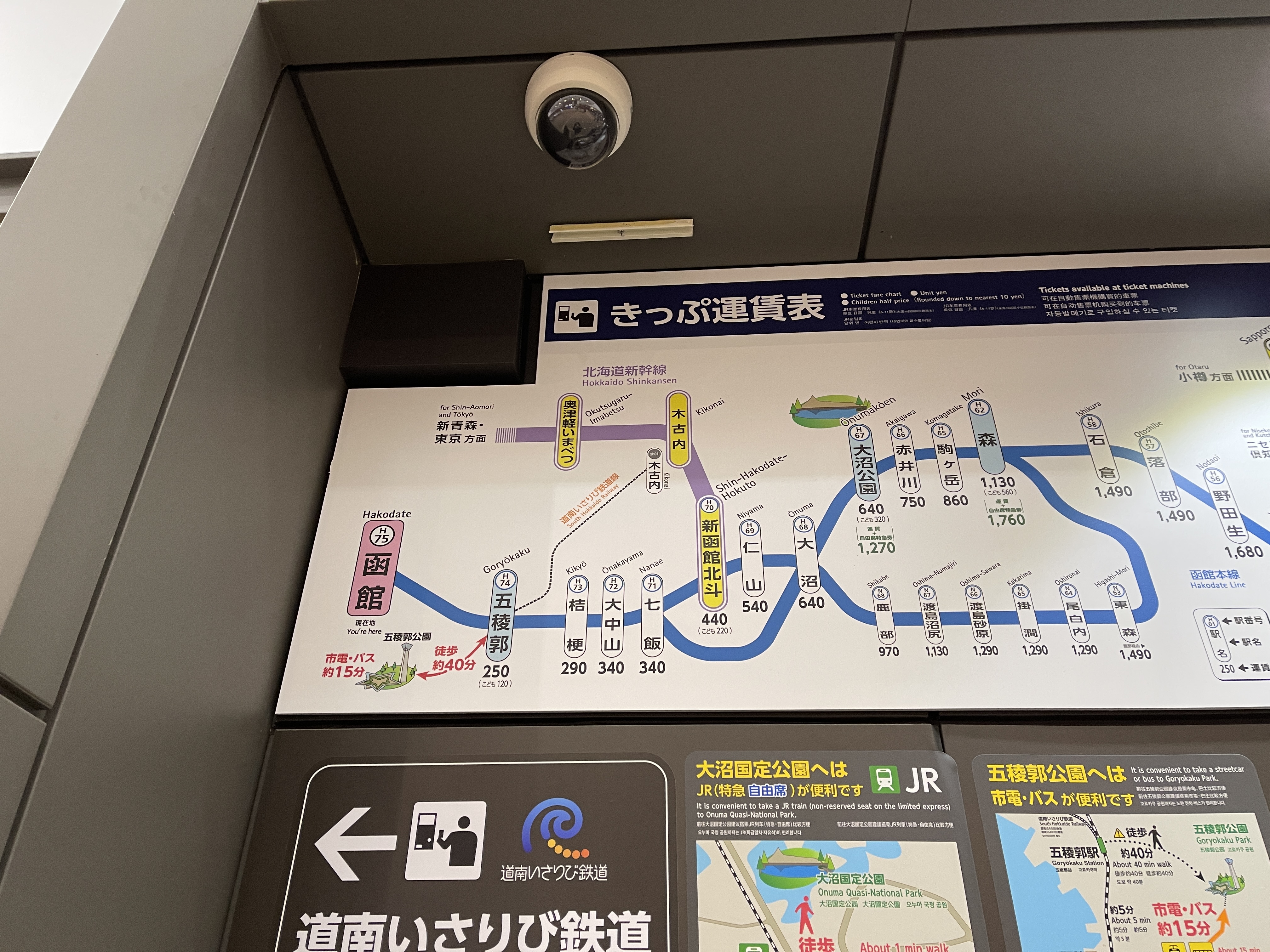 하코다테역에서 하코다테 페리 터미널과 가까운 도난 이사리비 철도 나나에하마역까지 가는 표를 사야 하는데