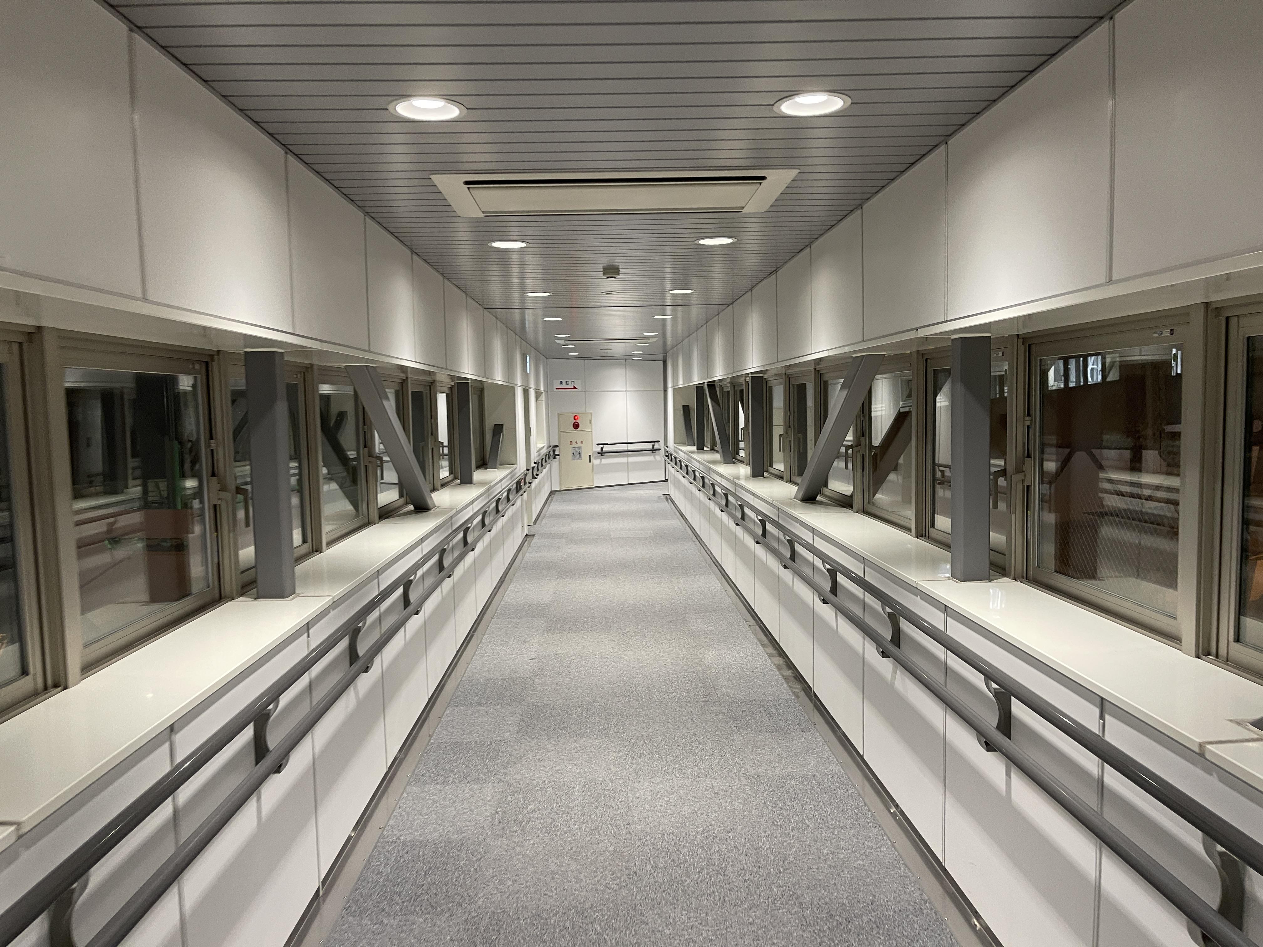 보딩 브리지와 연결되는 3층으로 올라와 문이 열리기를 기다립니다.