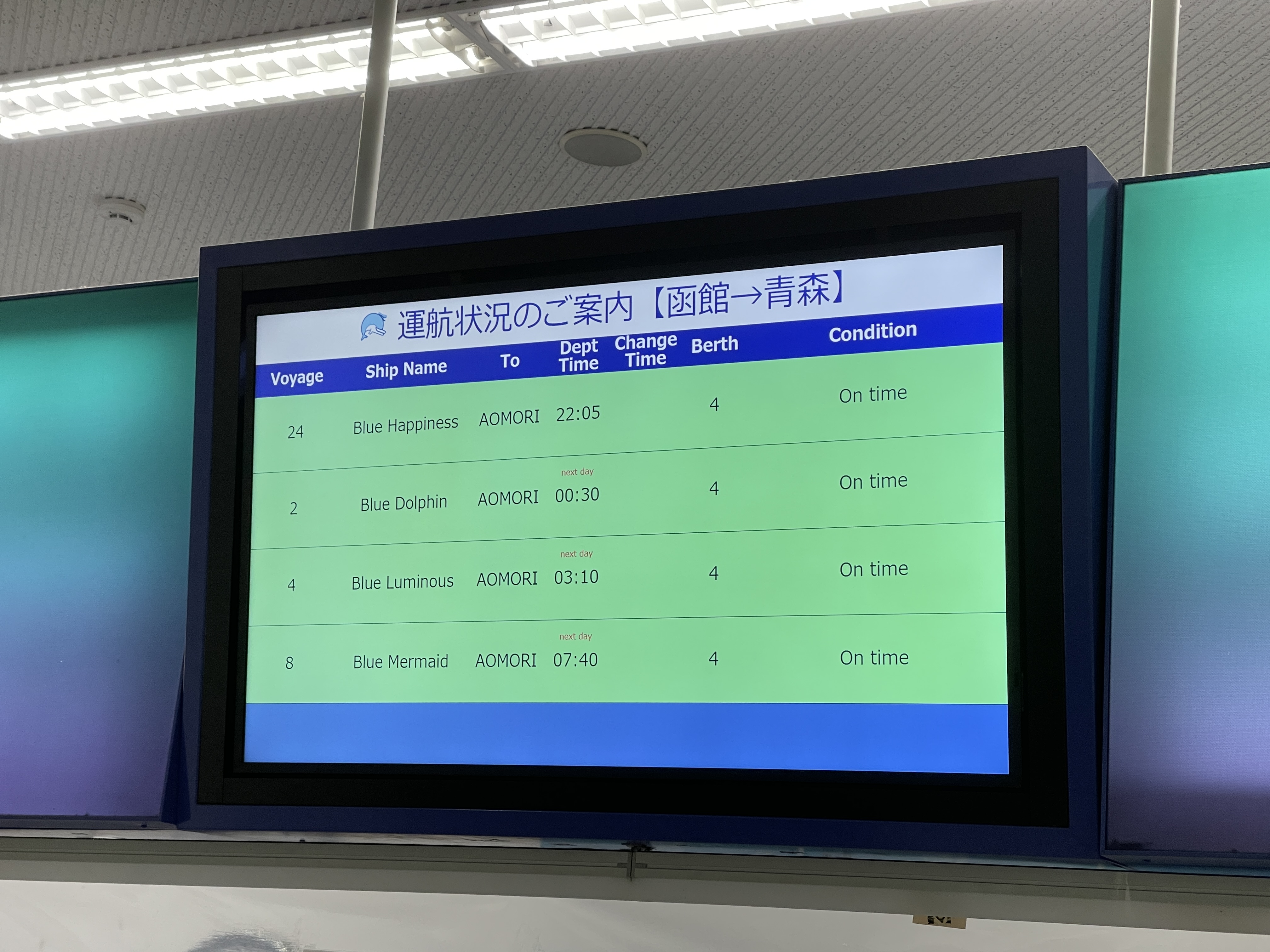 블루 돌핀호가 하코다테 터미널에 정박한 것을 확인하고
