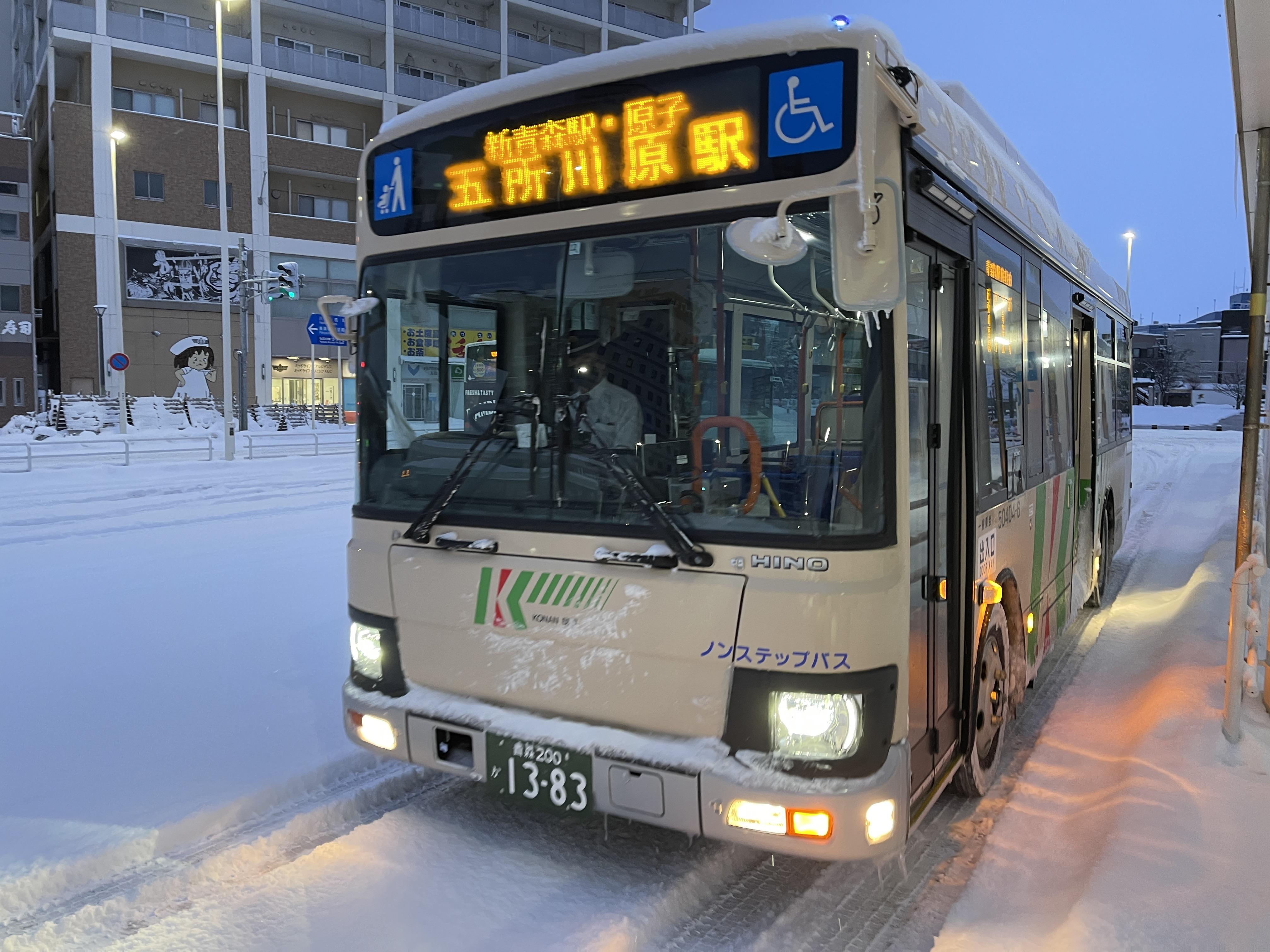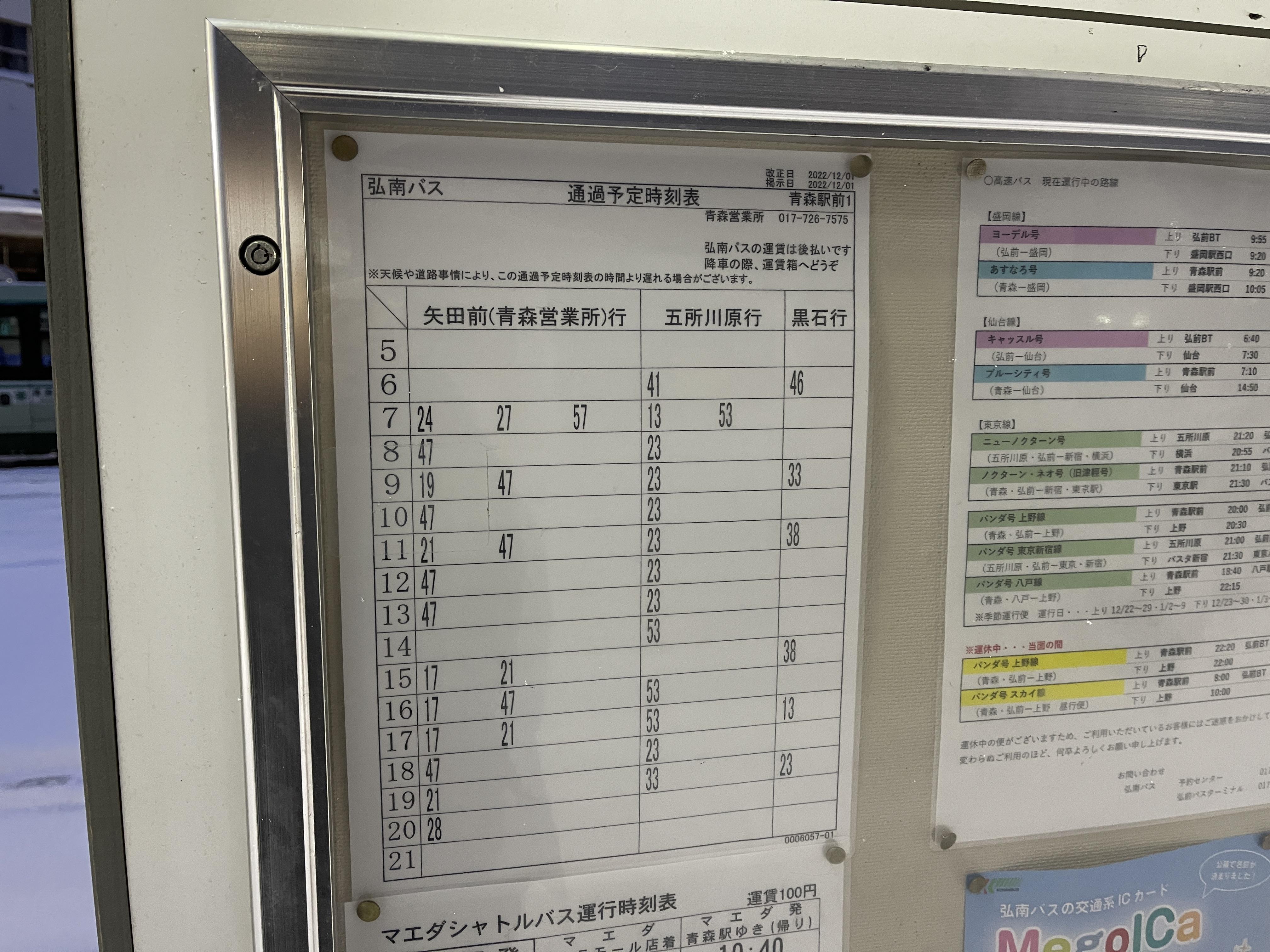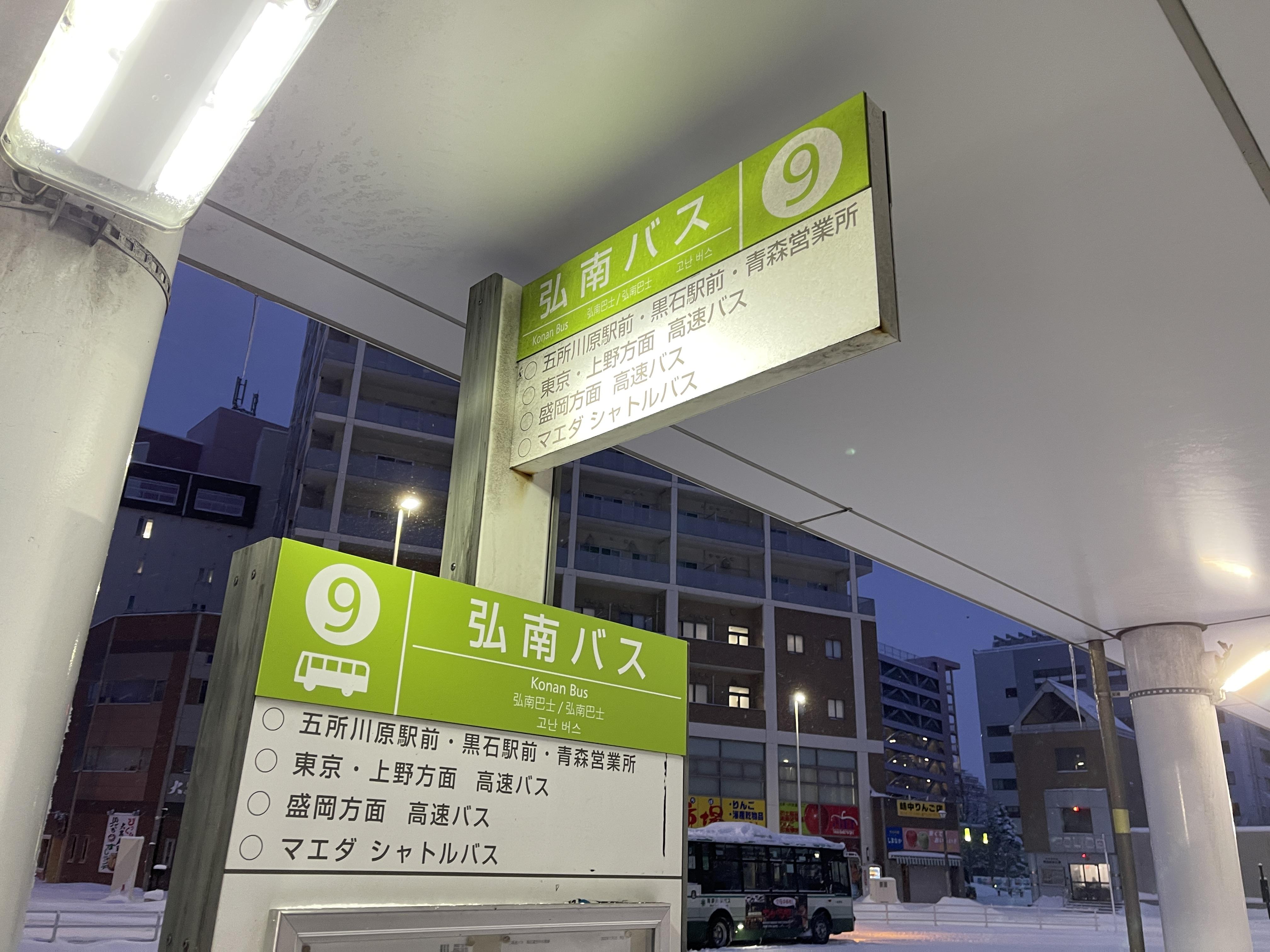 아오모리역 앞 정류장 9번 타는 곳에서 고쇼가와라역전행 버스를 탑니다.
