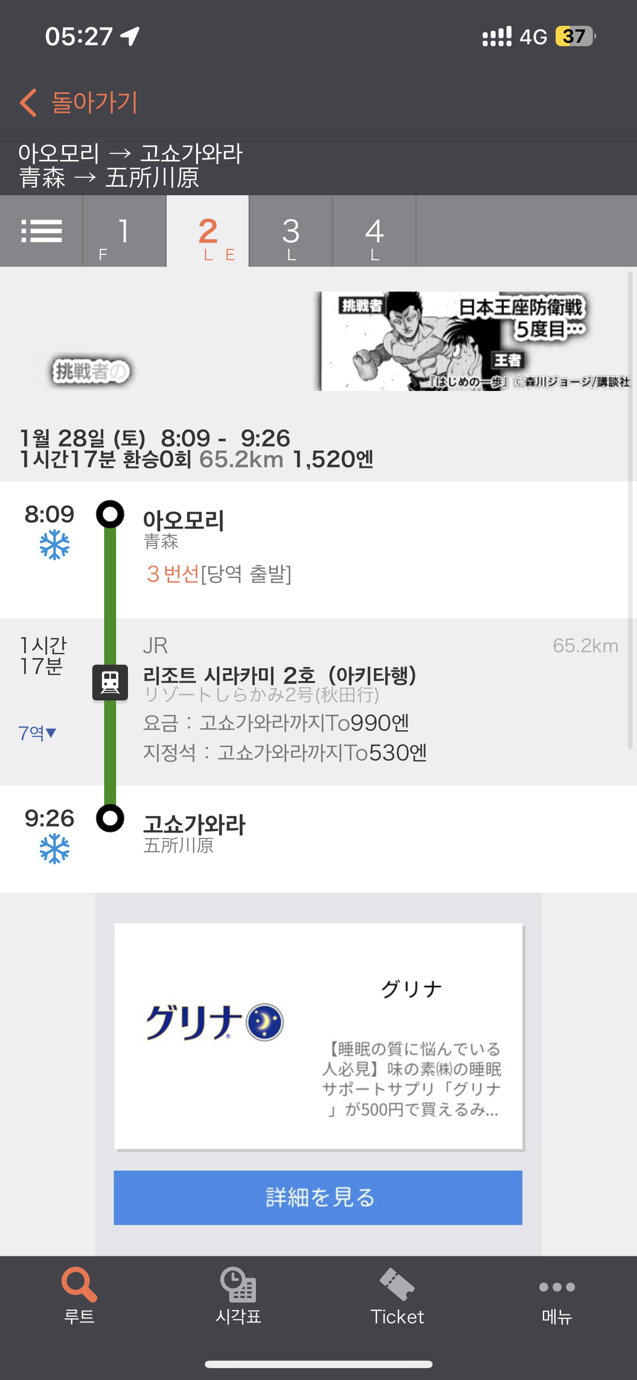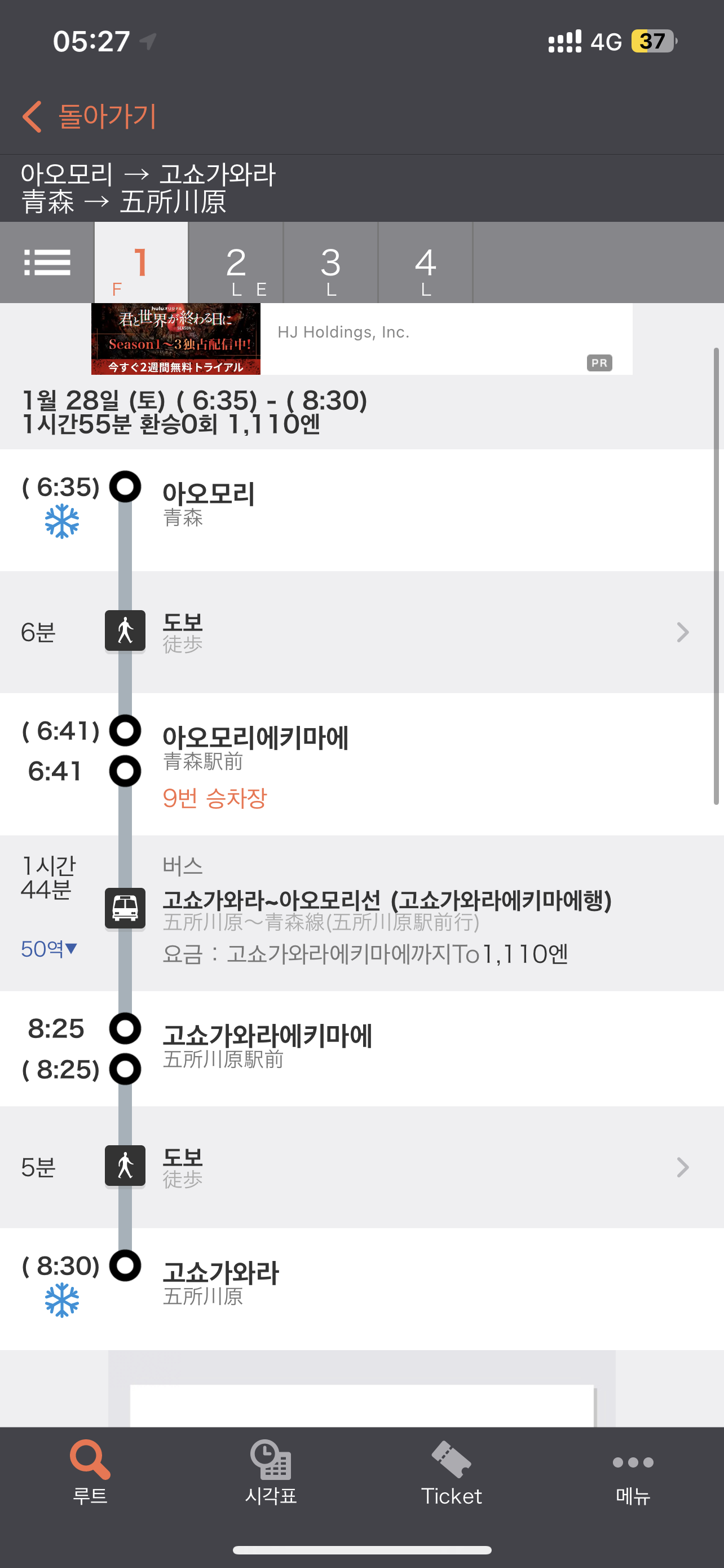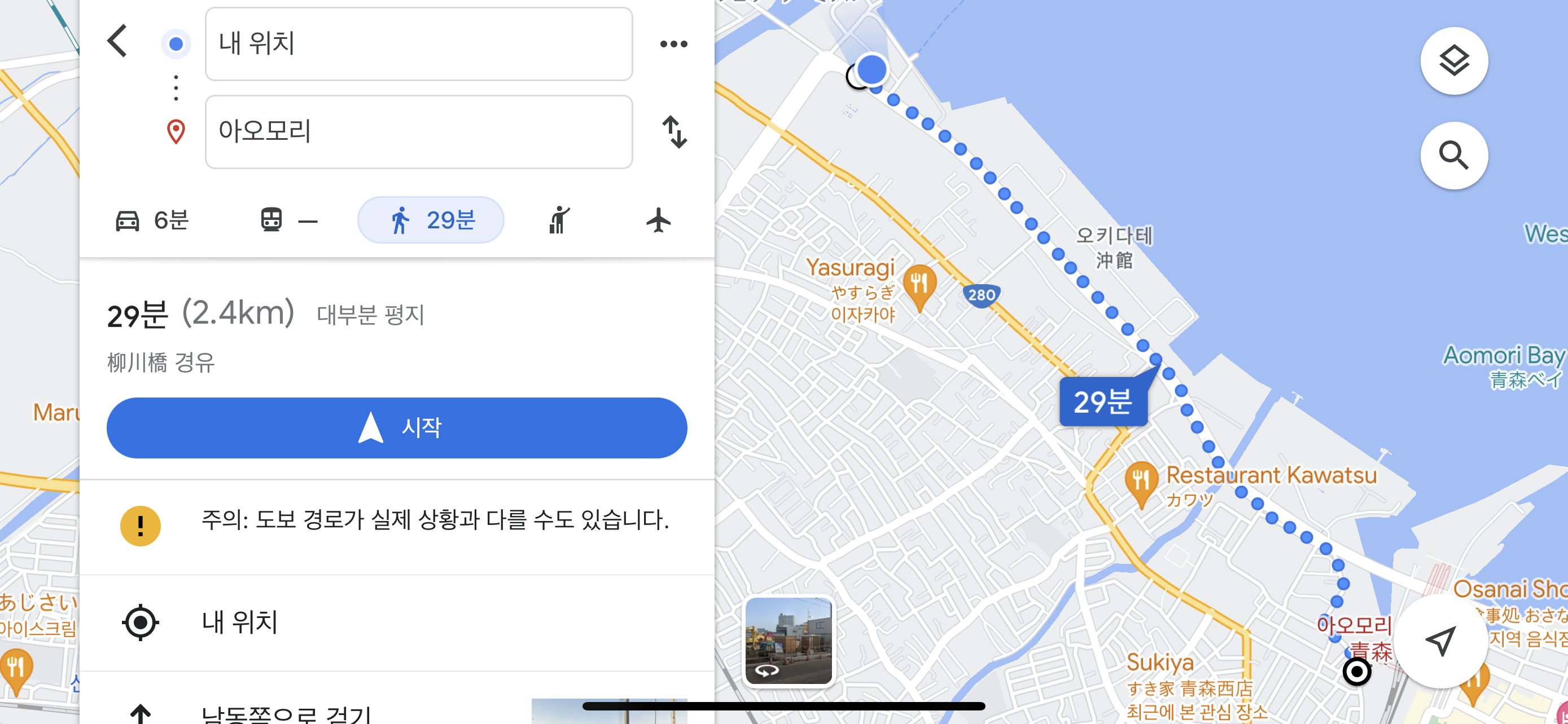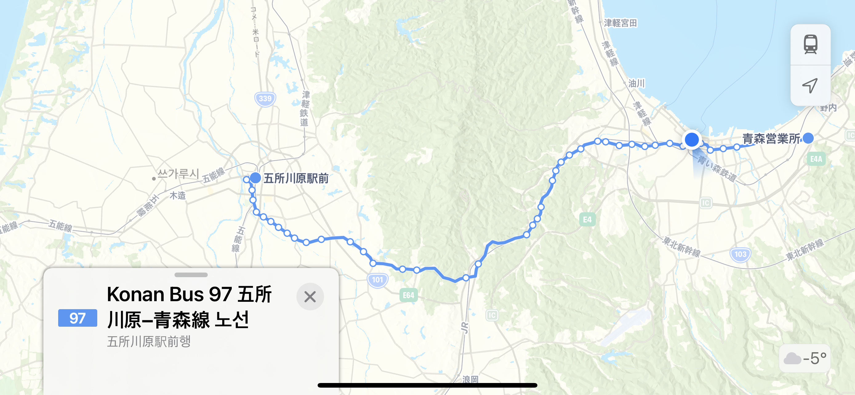 아오모리역까지 가는 길을 다시 확인하고 나서