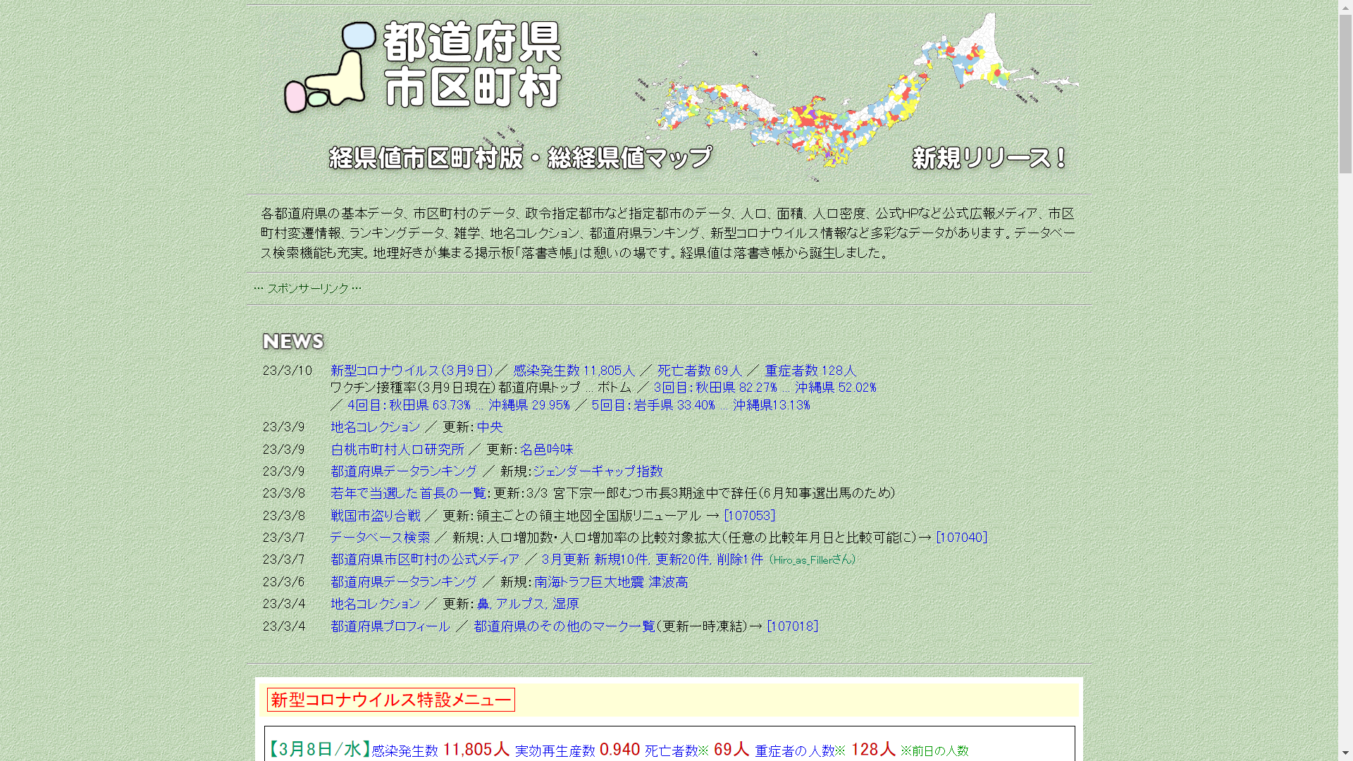지리를 좋아하는 사람들이 모였다는 일본 지리 정보 사이트 도도부현시구정촌(都都府県市区町村)에서