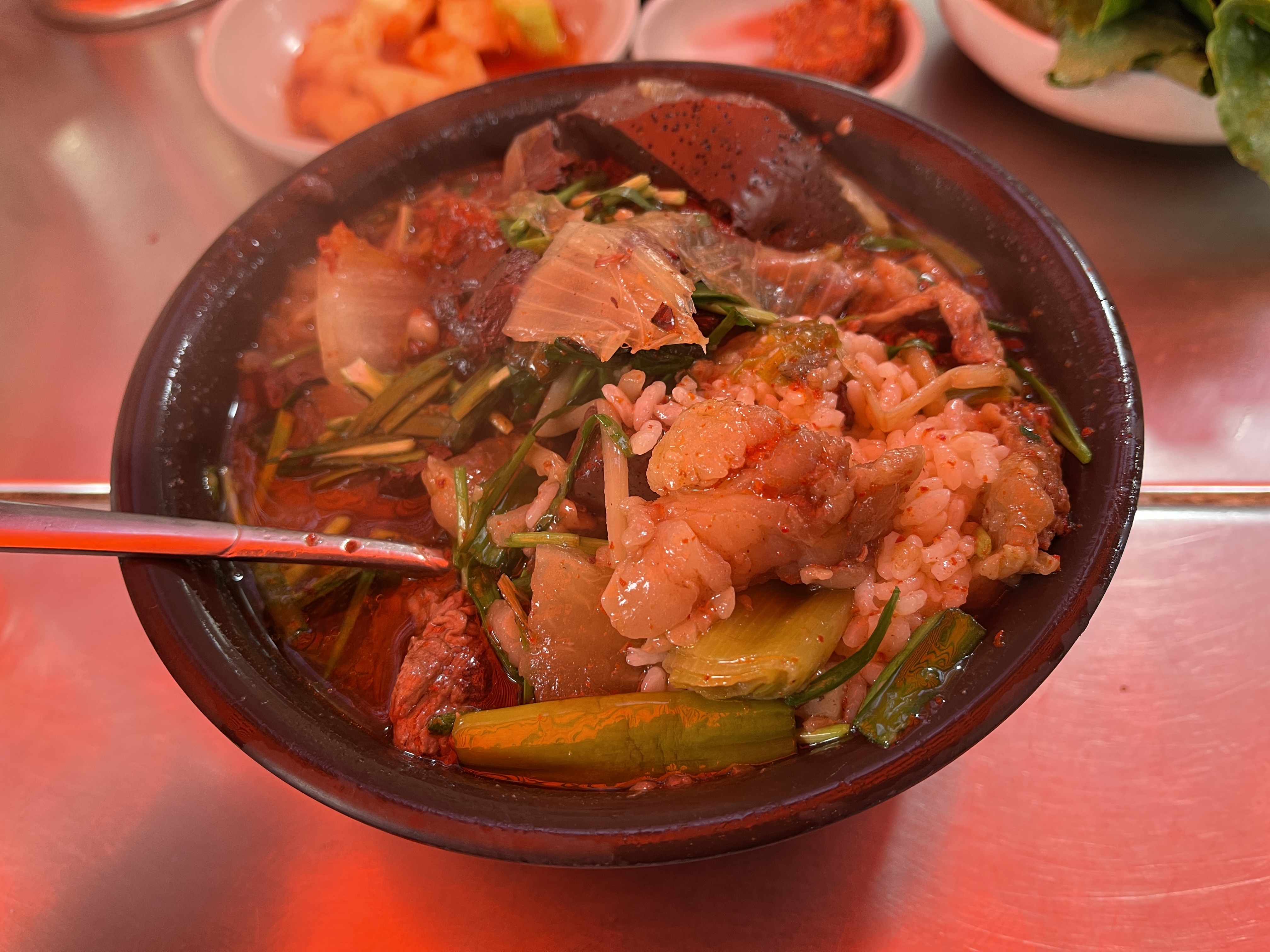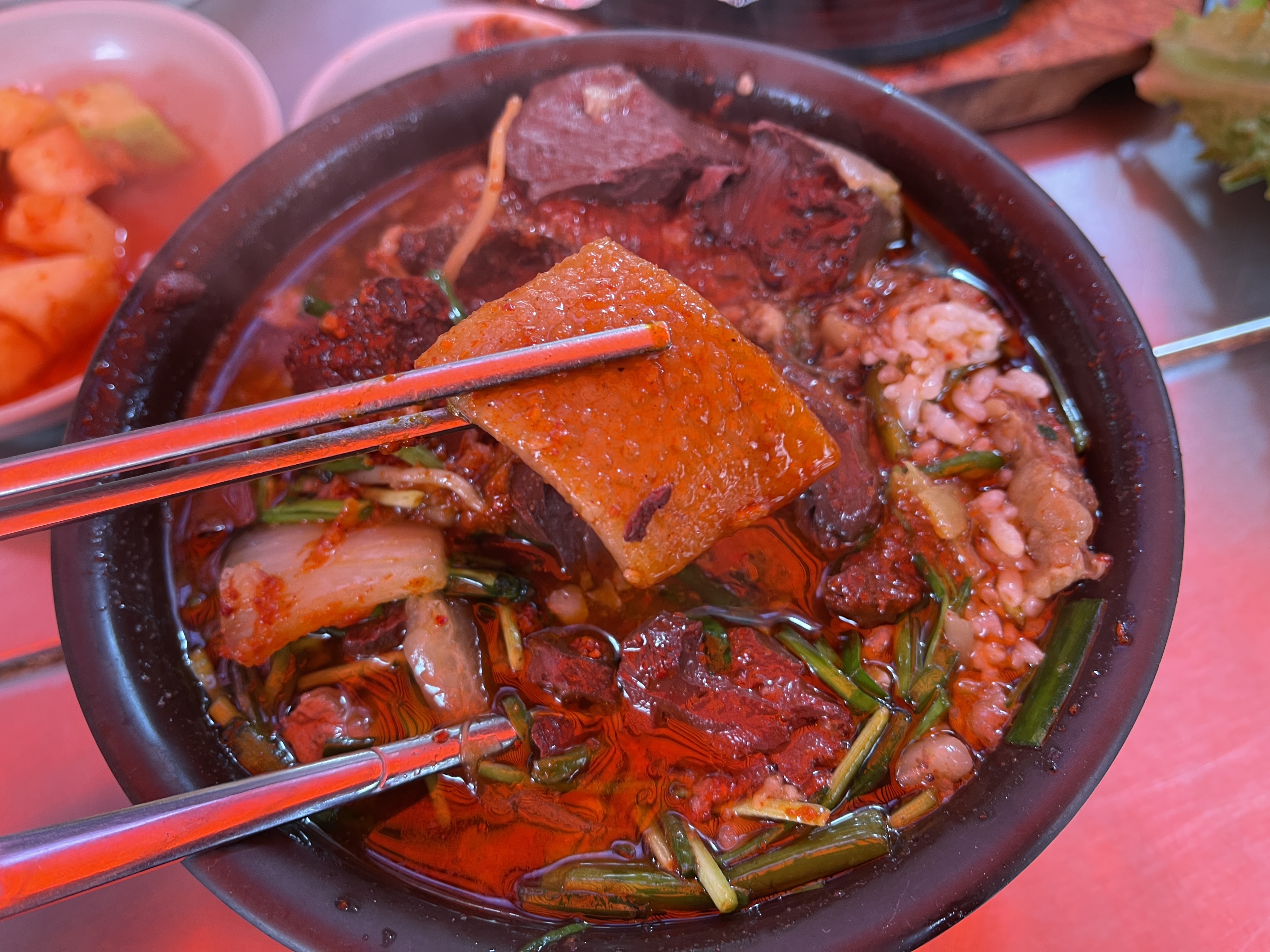 시장을 걷다 보면 선짓국을 파는 집들이 다닥다닥 붙은 길이 나오는데