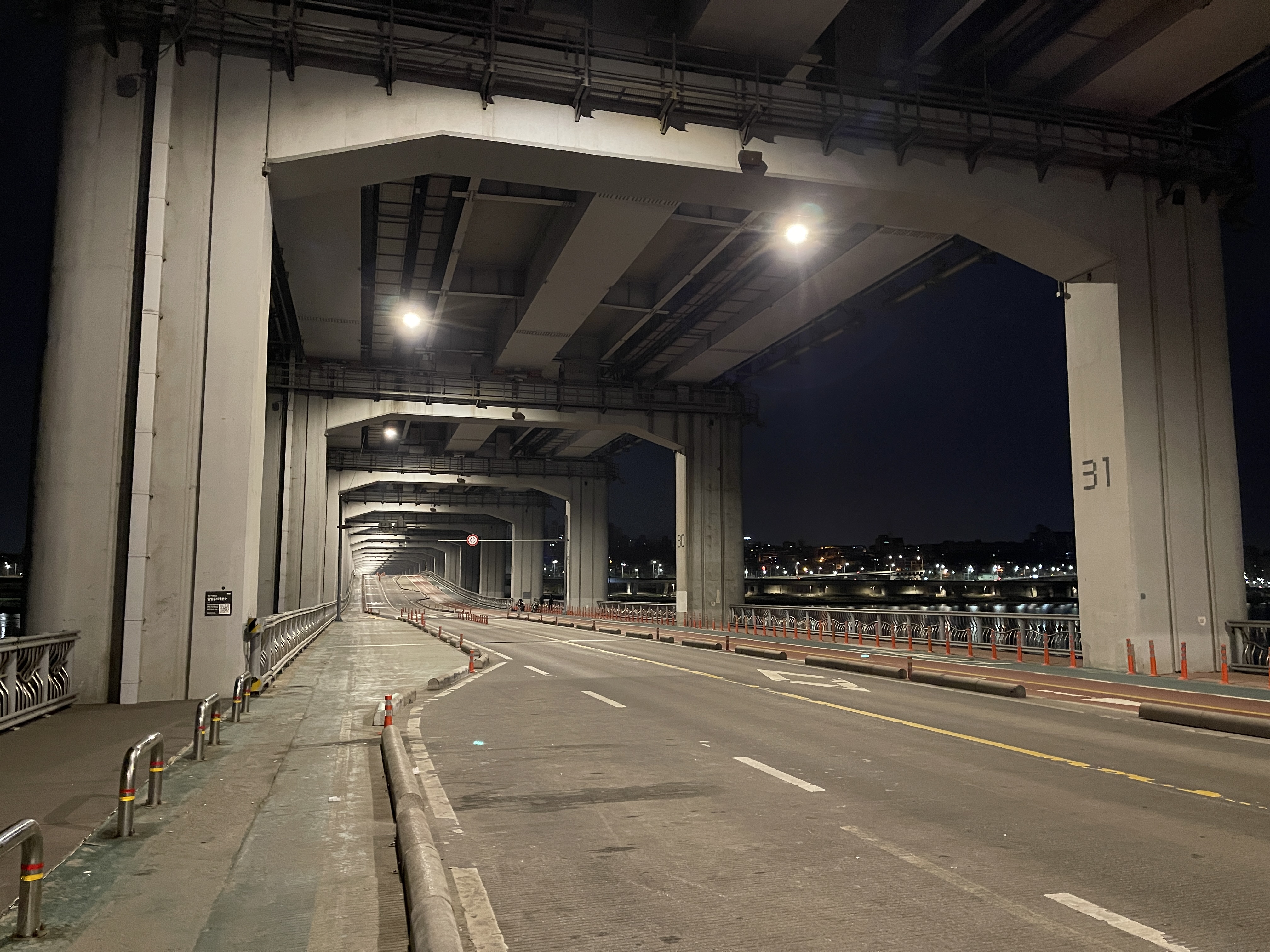 한밤중이라 막히지 않는 서부간선도로를 달려 서울에 진입.