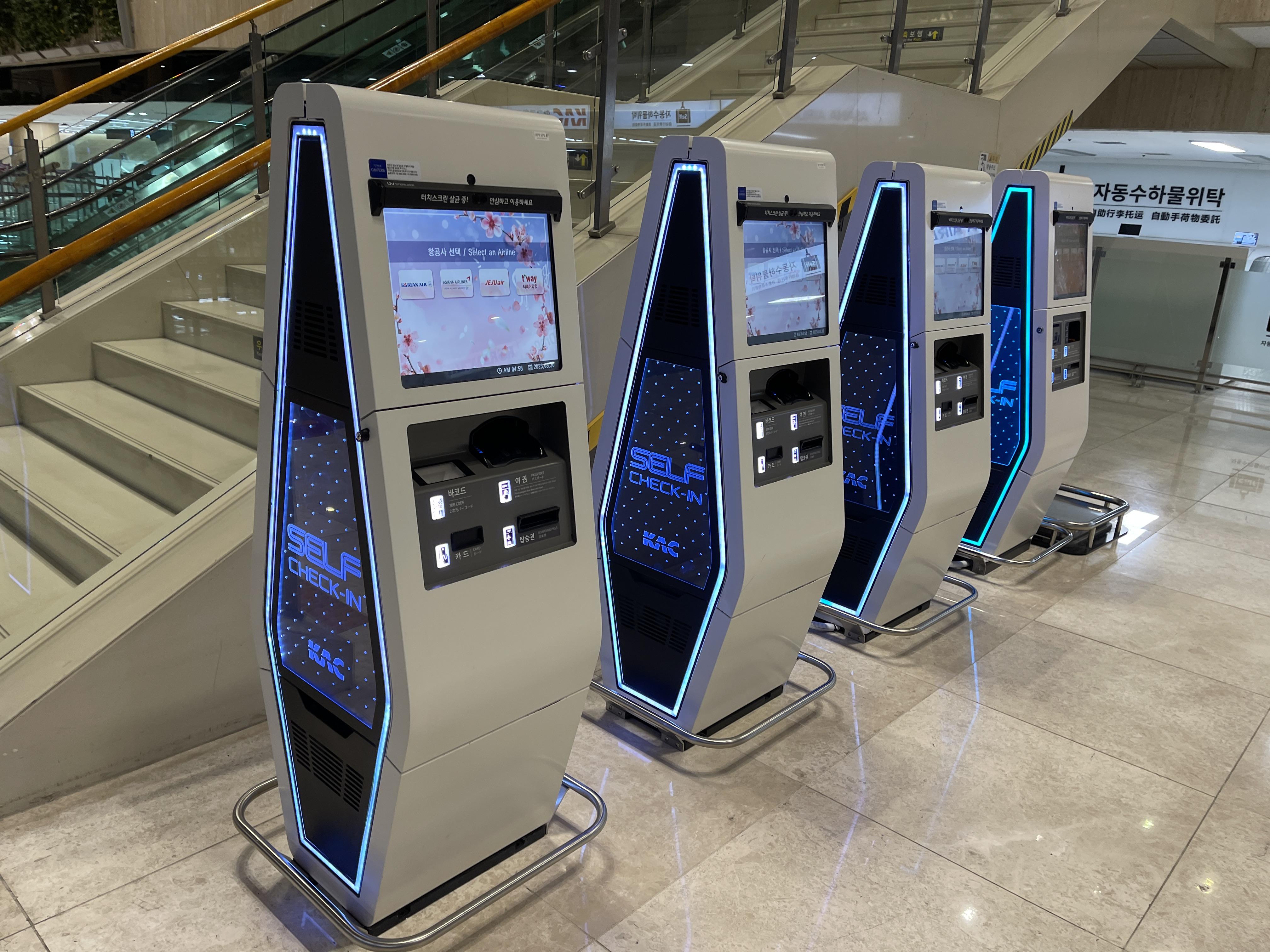 체크인 카운터는 문을 열려면 아직 멀었지만 셀프 체크인 기계는 이미 모든 준비를 마쳤길래