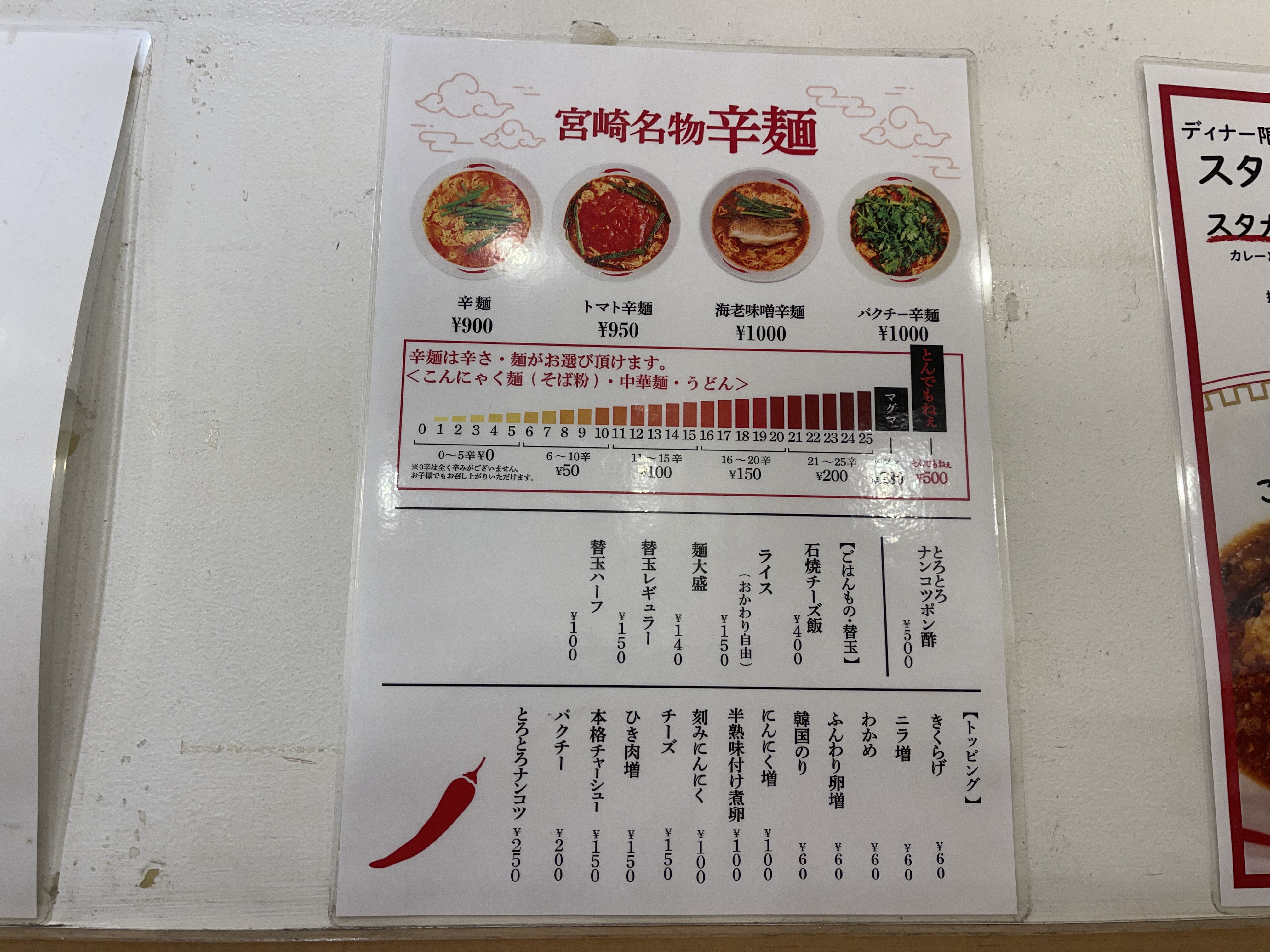 다만 가게 앞에 고추를 대놓고 보여주는 것을 보면 알 수 있듯이 이곳의 주력 메뉴는 매운 라멘, 카라멘(辛麺)입니다.