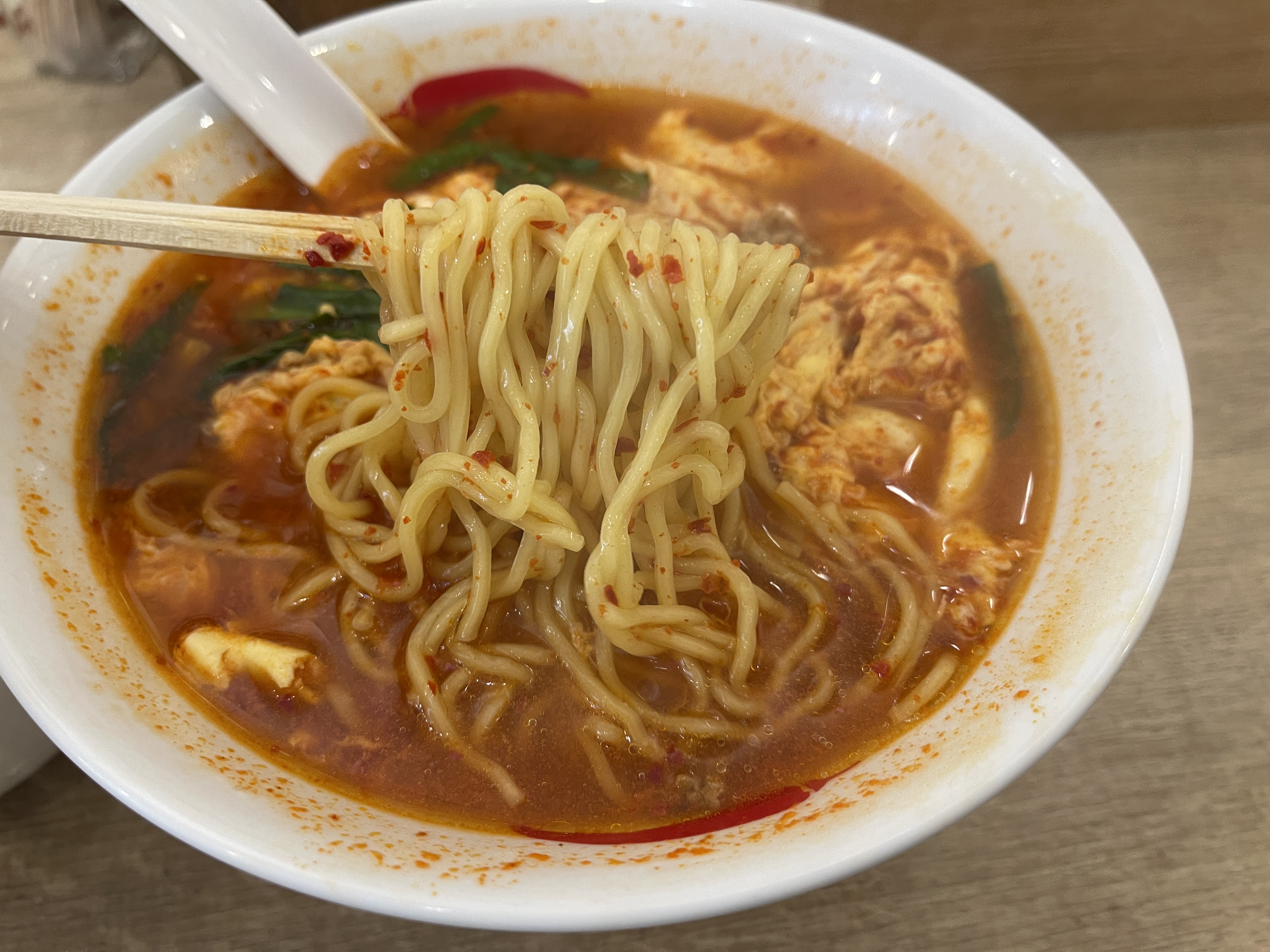 조금 기다리니 한국에서 접하기 쉬운 정도의 빨간 국물이 담긴 라멘과